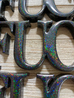 It's my favorite word, and if it isn't yours as well... you should really reconsider. This rainbow word art features a fantastically sparkly dark iridescent rainbow effect. Each fuck I have to give measures 1/2 inch thick, 2.5 inches tall and 6.5 inches long. The world's most versatile word is made of resin and includes a glittery rainbow effect with a glossy black back.