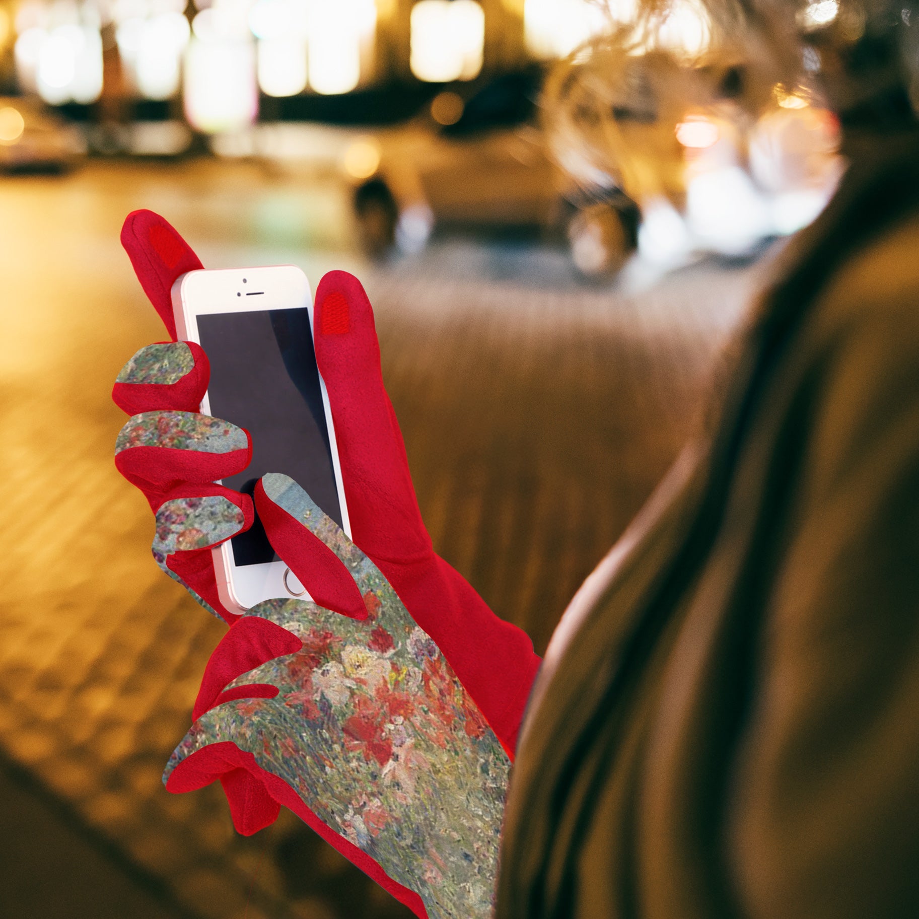 American Impressionist Childe Hassam's Celia Thaxter's Garden, Isles of Shoals, Maine depicts a gorgeous wildflower garden cultivated by his friend, the poet Celia Thaxter. These luxurious crimson gloves artfully display Hassam's painting while protecting your hands from sun, wind and cool weather. Wear a masterpiece – these buttery soft faux suede gloves complete any outfit and are ideal for travel, commuting, church, gardening and special occasions. Pretty and practical, RainCaper gloves are the perfect gift for stylish women. Matches Celia's Garden/Isles of Shoals RainCaper and umbrellas.