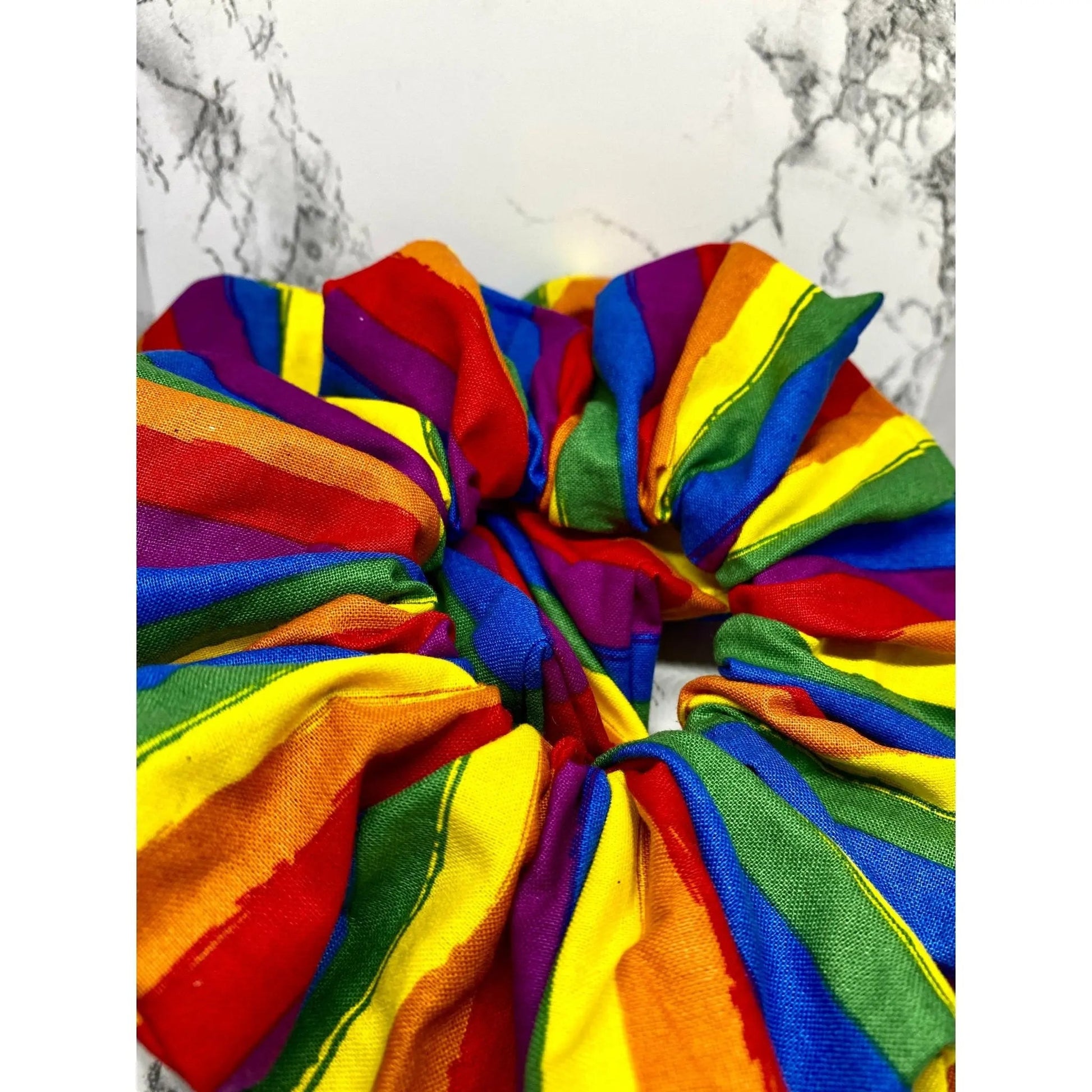 Discover the ultimate accessory for Pride with our Rainbow Pride Flag Oversized Scrunchie. This vibrant and durable scrunchie is perfect for making a bold statement. Crafted with top-quality materials, our unbreakable scrunchies ensure long-lasting use. Embrace your style with our giant scrunchies, designed to hold any hairstyle securely. Celebrate in color and comfort with our oversized scrunchies, ideal for every occasion. Get your rainbow scrunchie today and show off your pride with flair!