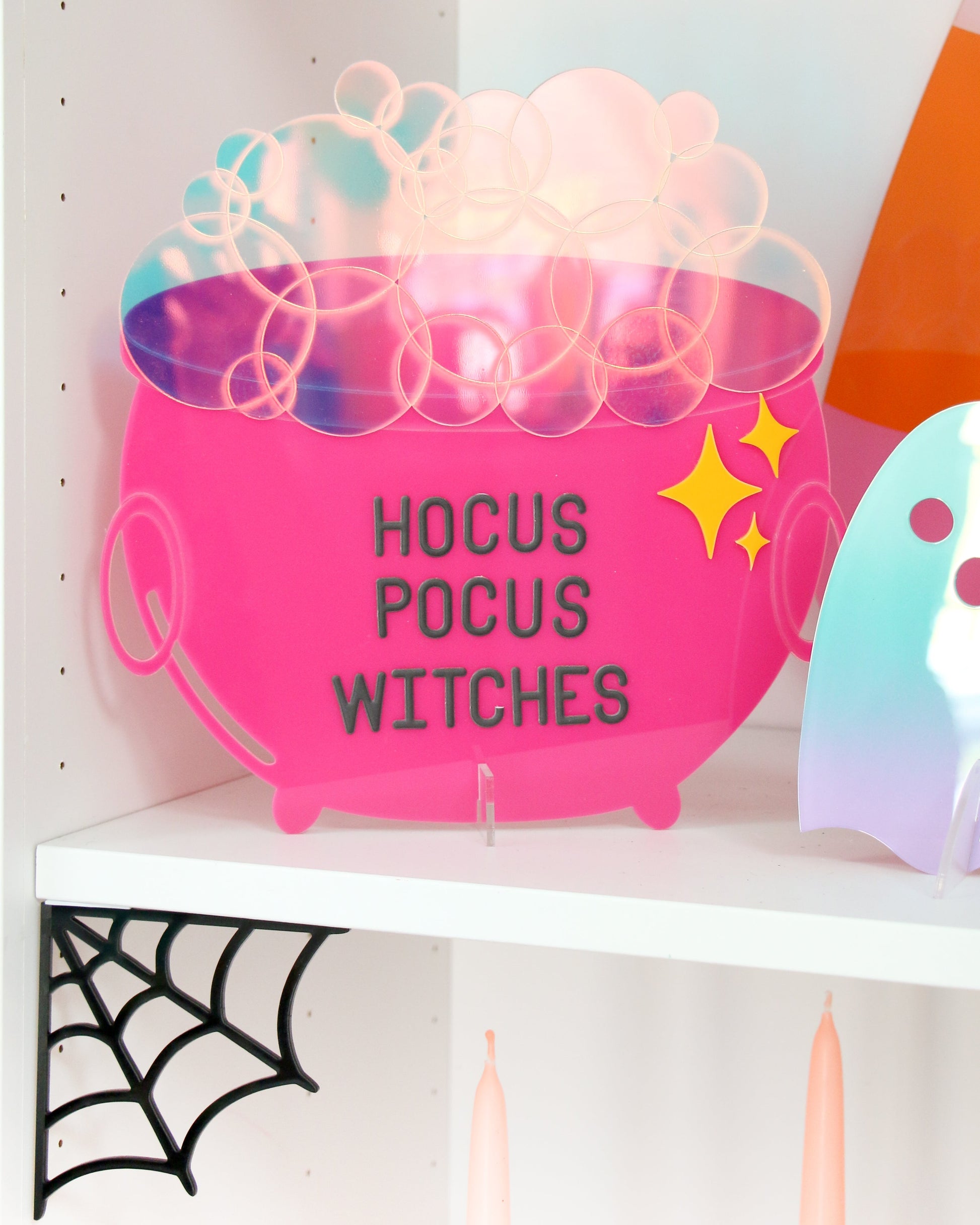 Iridescent and pink acrylic cauldron memo board Halloween decor