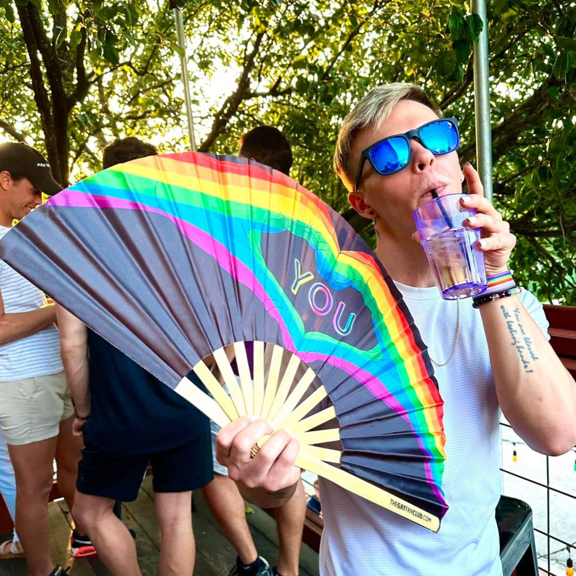 Loud hand fan perfect for Pride festivals, parties, and heartfelt moments