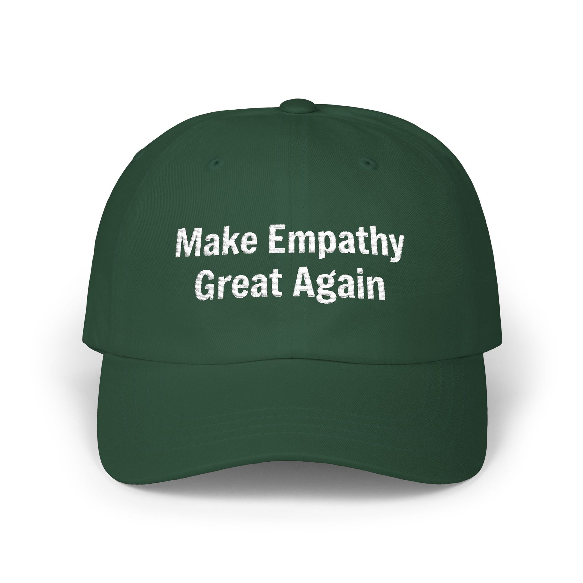 Elevate your casual style with this classic Dad Cap, perfect for adding a touch of personality to any outfit. Crafted for comfort, it features a low profile and unstructured body, making it ideal for everyday wear. The cap radiates a laid-back vibe, beautifully merging practicality with style. Whether you're running errands, enjoying a day at the park, or just chilling with friends, this cap fits seamlessly into any occasion. Join the movement toward empathy and wear your message proudly!