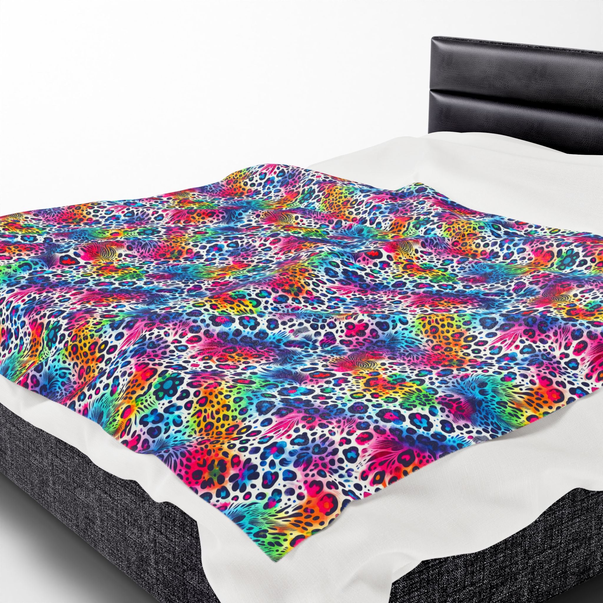 Bespattered Facade Neon Animal Print Velveteen Plush Blanket | 3 Sizes