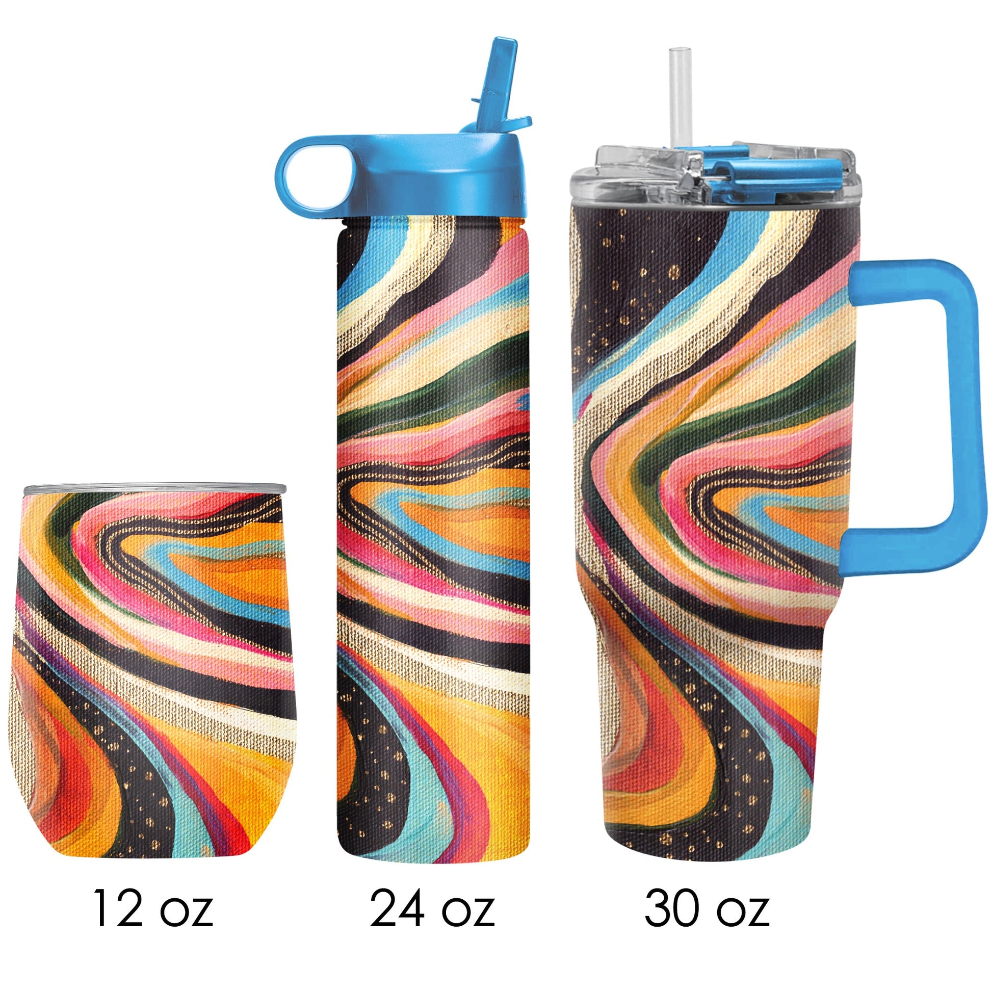 Discover the perfect blend of style and practicality with our Stainless Steel Tumbler. The sleek, modern design of this Tumbler makes it a fashionable accessory for any occasion. Whether you're hitting the gym, the office, school, or the trails, it's the perfect choice. This double-wall vacuum insulated Tumbler keeps beverages hot, cold and even keeps ice frozen for a certain number of hours depending on the size. Crafted from durable, BPA-free 18/8 stainless steel, it's a sustainable and eco-friendly choice. The leak-proof design guarantees a mess-free experience, while the wide mouth simplifies cleaning. Elevate your hydration game, reduce waste, and enjoy hassle-free adventures with this travel-friendly companion.Our product features exquisite designs inspired by the vibrant, colorful designs and bold patterns of Jessi Raulet. She began her love affair with color at the age of four and has been creating ever since. She paints colorful fine art pieces and designs to brighten up her surroundings. She is inspired by her life in France, travel adventures and pop culture. Add a touch of her exceptional artistry to your life with our exclusive collection featuring Etta Vee's unique and lively creations.Stunning rendering of Etta Vee's famous art, "Abstract 1." The design is captured with an artist's eye for detail, light & color.