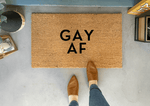 Our GAY AF Pride Doormat is the perfect way to welcome your friends who visit your home. With it's BOLD text design, let it be known that you support equality and welcome people from all walks of life into your home. Bring more love (and laughter) into your house with this hand made, durable doormat.