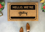 Welcome your guests with a touch of humor and pride with our Hello We're Gay Funny Pride Door Mat! Perfect for adding personality to your front porch or entryway, this doormat is sure to make your visitors feel welcome.