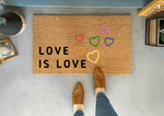Welcome your family and friends with a colorful entrance! This hand-made welcome mat is the perfect way to show your support and pride to all visitors! The text and rainbow hearts design shows that your house is full of love, fun and excitement! Be bold, be bright, show your pride and support for our LGBTQ+ community.