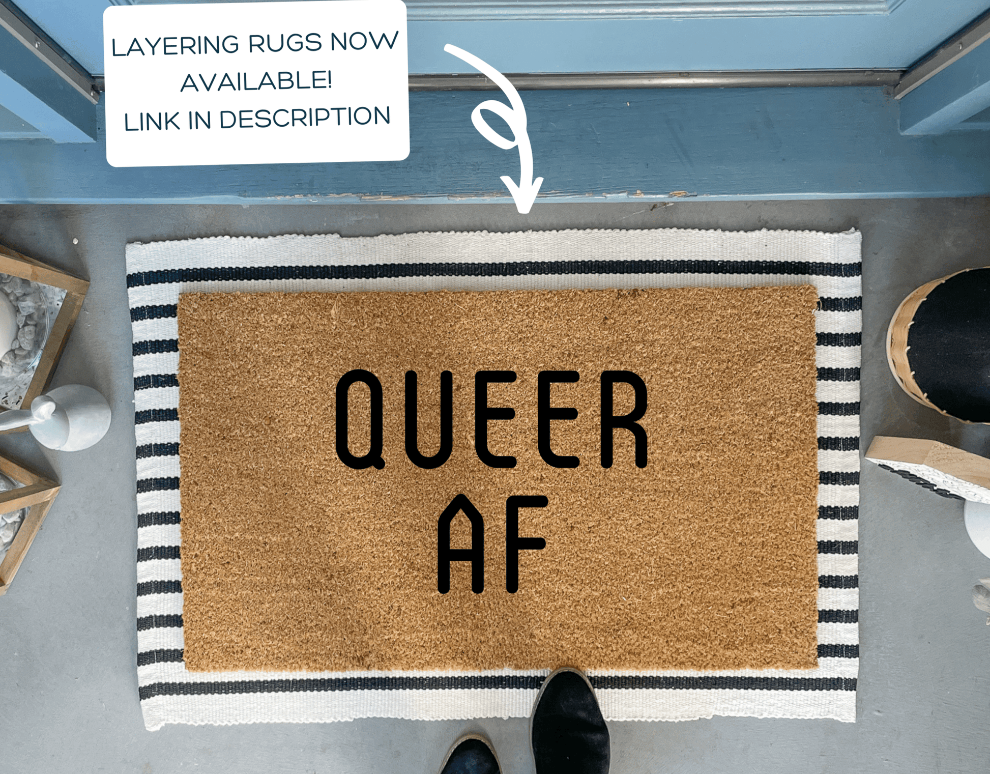 Our QUEER AF Pride Doormat is the perfect way to welcome your friends who visit your home. With it's BOLD text design, let it be known that you support equality and welcome people from all walks of life into your home. Bring more love (and laughter) into your house with this handmade, durable doormat.