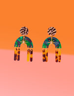 These Boho print mix earrings are the fun, neutral statement piece you never thought you needed!. The Deco Star Glam Fringe Dangles feature a sophisticated, multi-layered silhouette pairing a modern checkered resin post with a vibrant "fringe" style arch. Accented with radiant gold-plated star charms, these dangles offer a rich, artisan energy that transitions seamlessly from day to night.