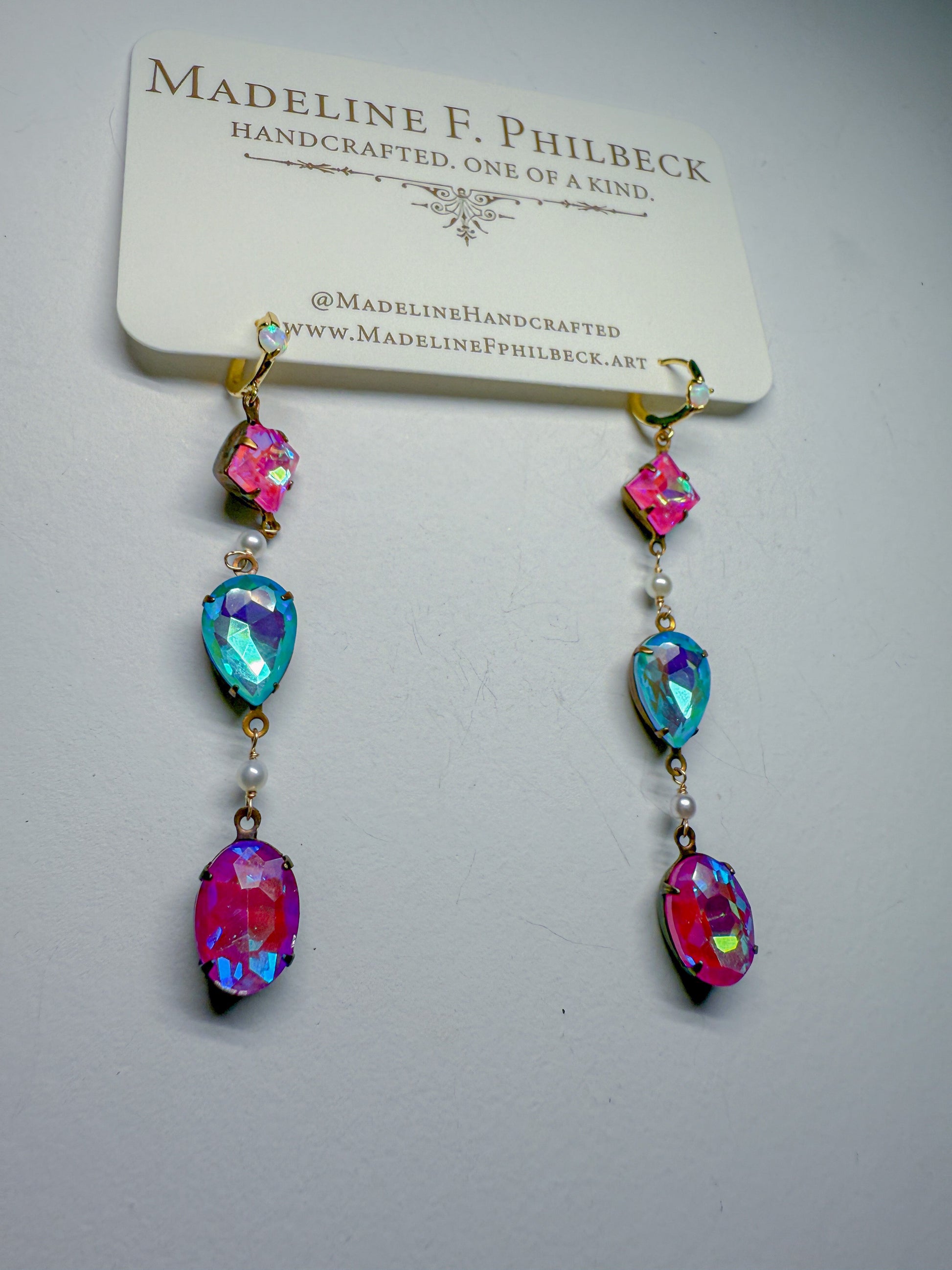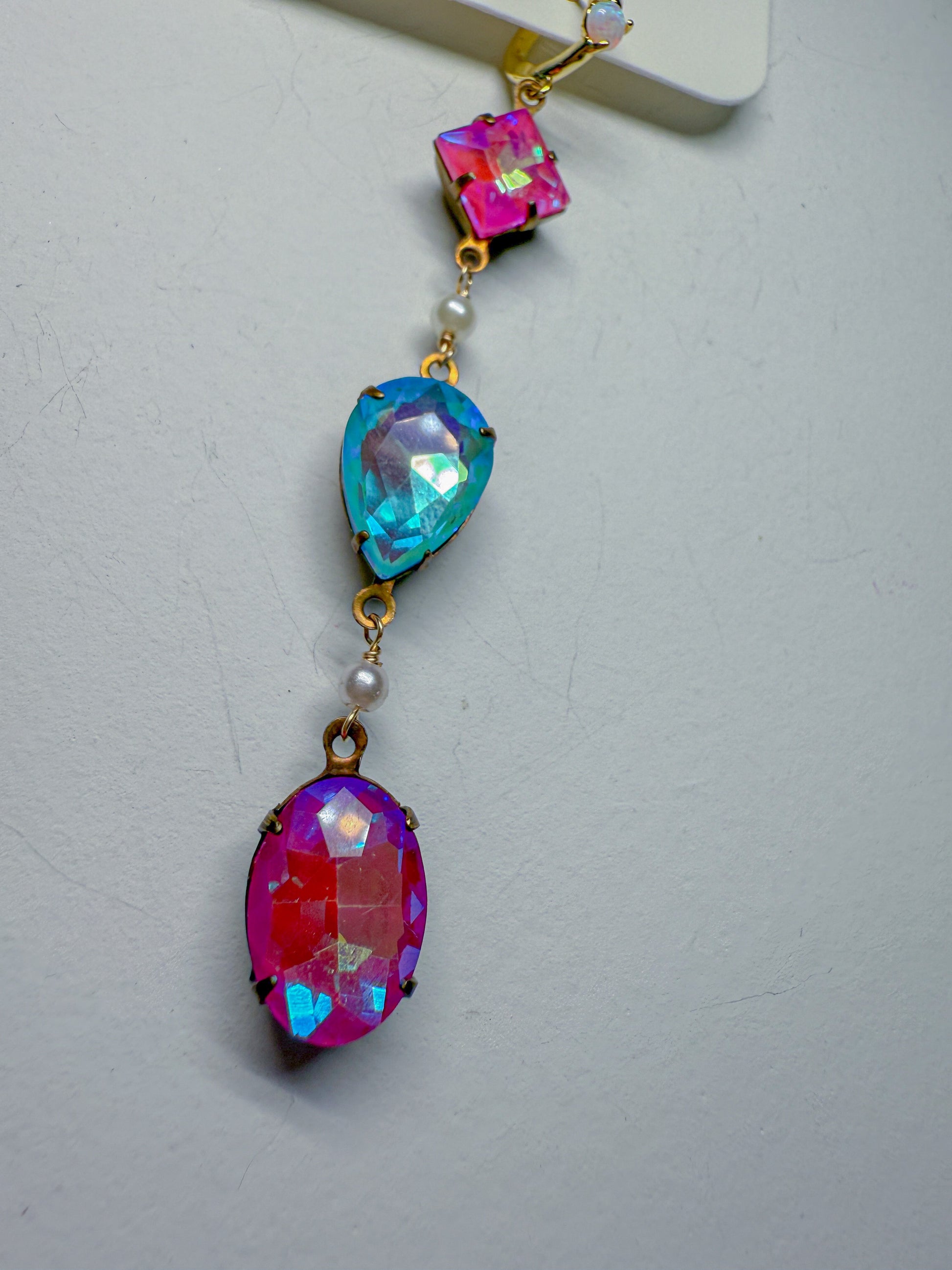 Vintage set Swarovski crystals and pearl on brass Huggies