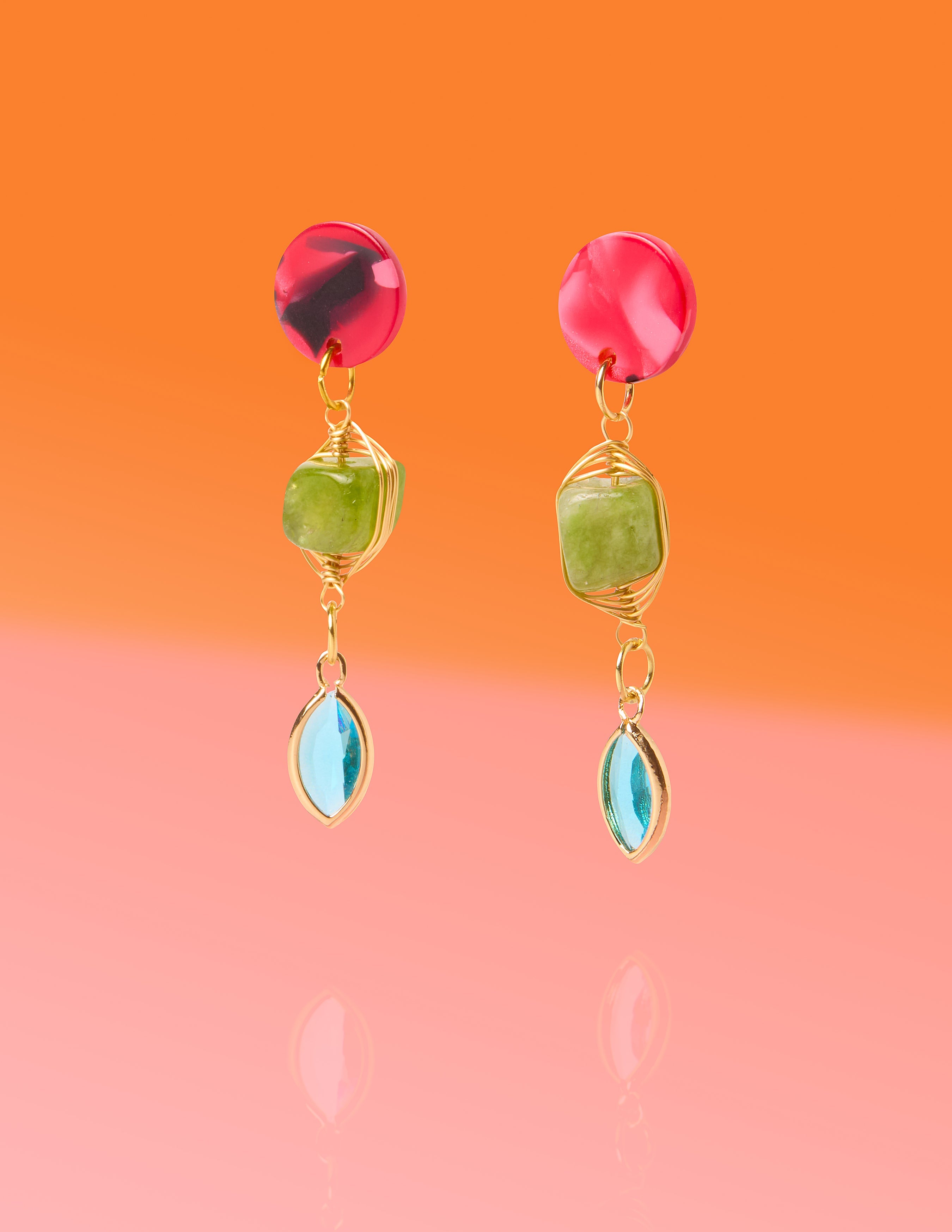 An elegant and joyful celebration of color and texture designed for your most special occasions. The Good Fortune Jade Glam Dangles feature a sophisticated design, pairing a vibrant red marbled resin post with a hand-wrapped genuine green jade stone.