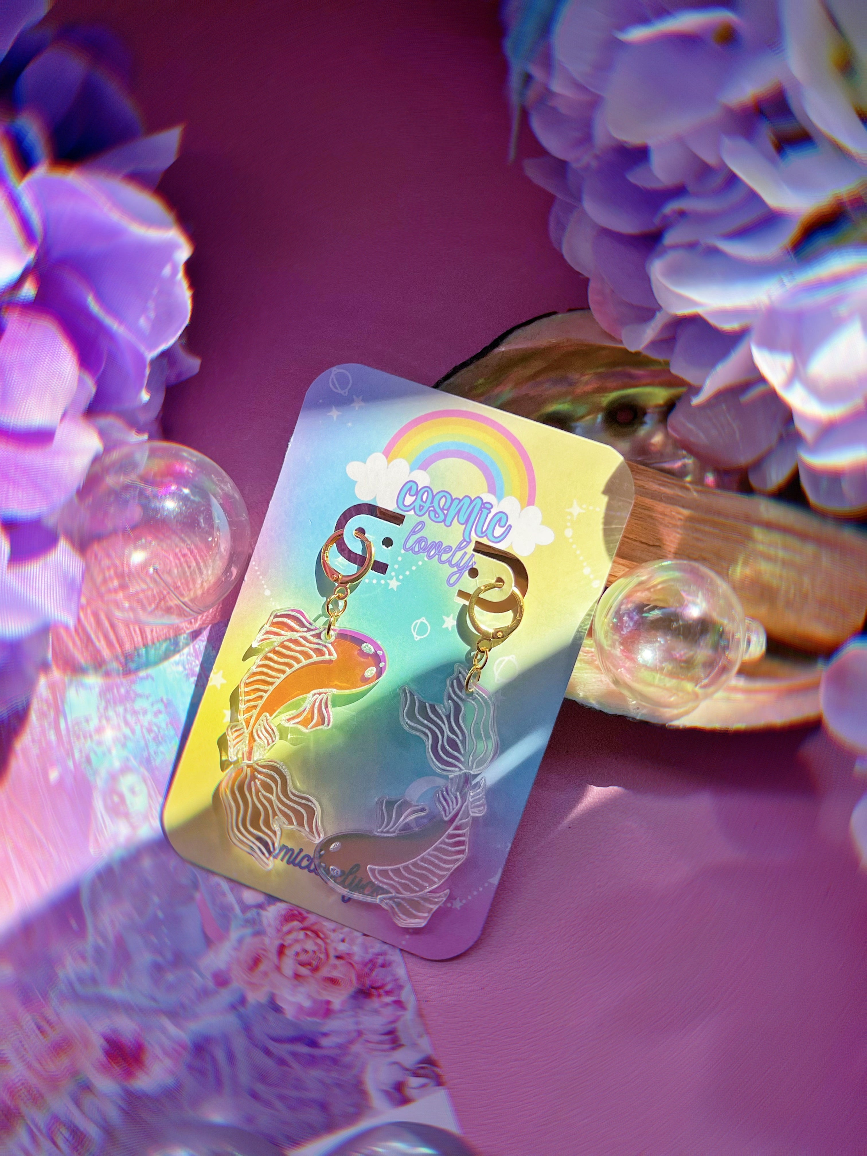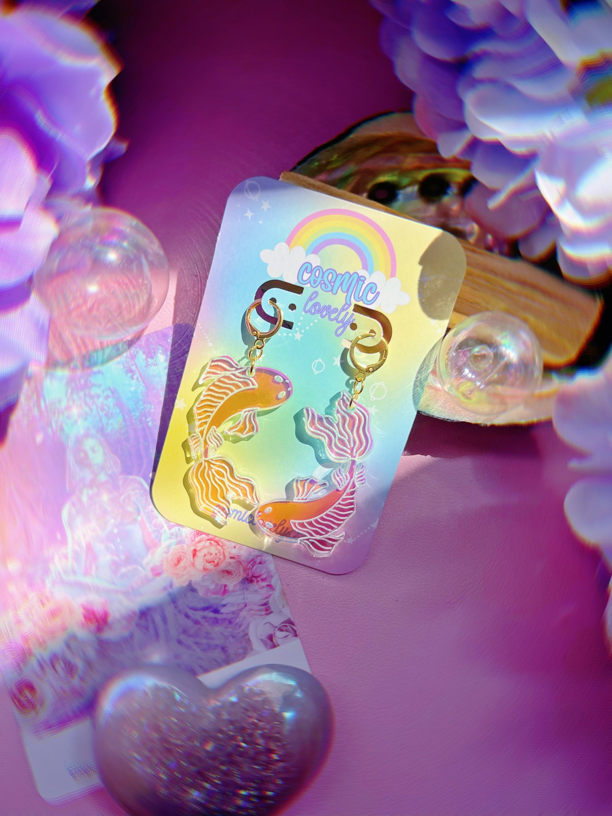 This listing is for ONE Pair of Iridescent Koi Fish Earrings. Leverbacks are hypoallergenic. Earrings are approximately 2"