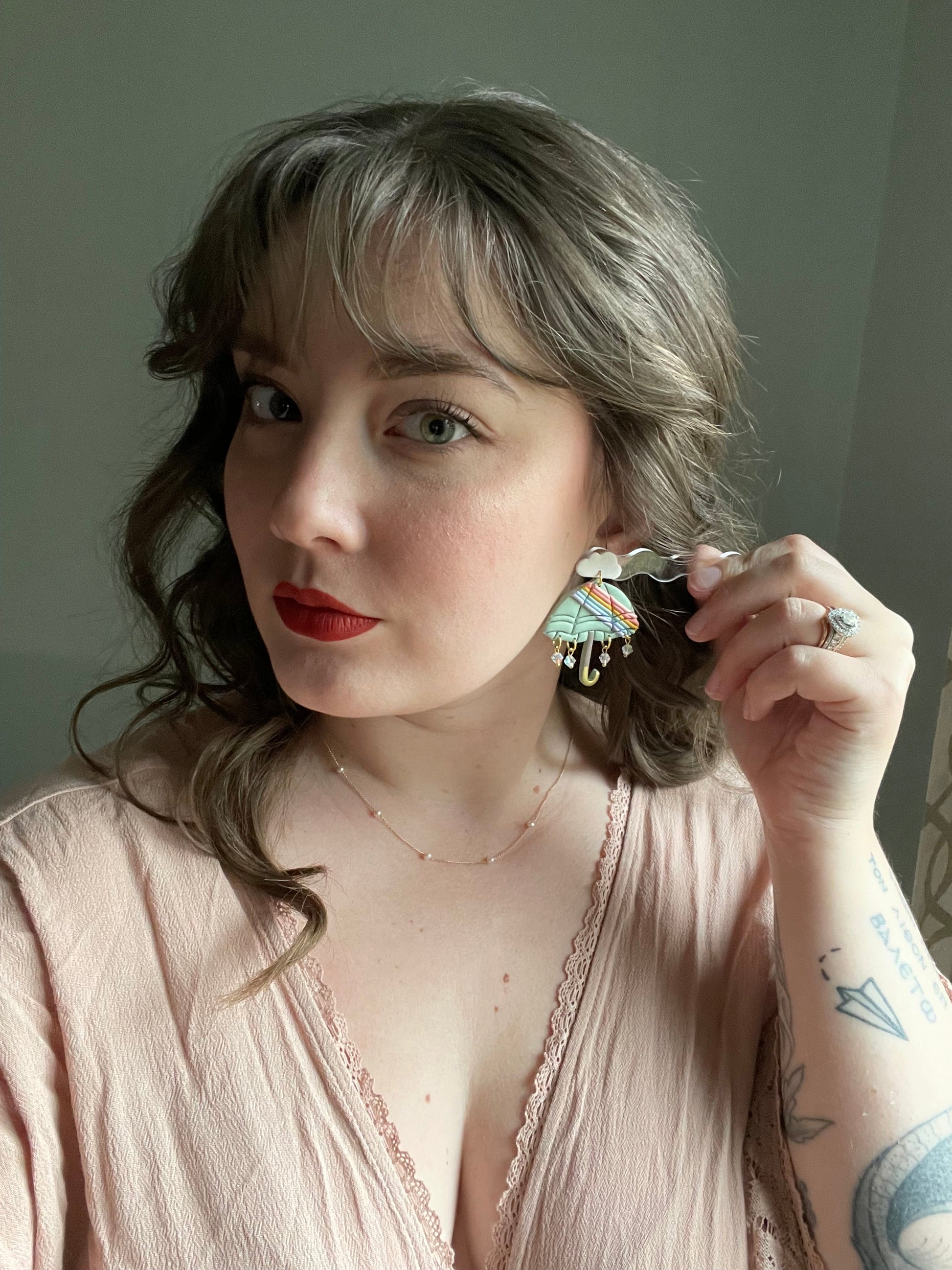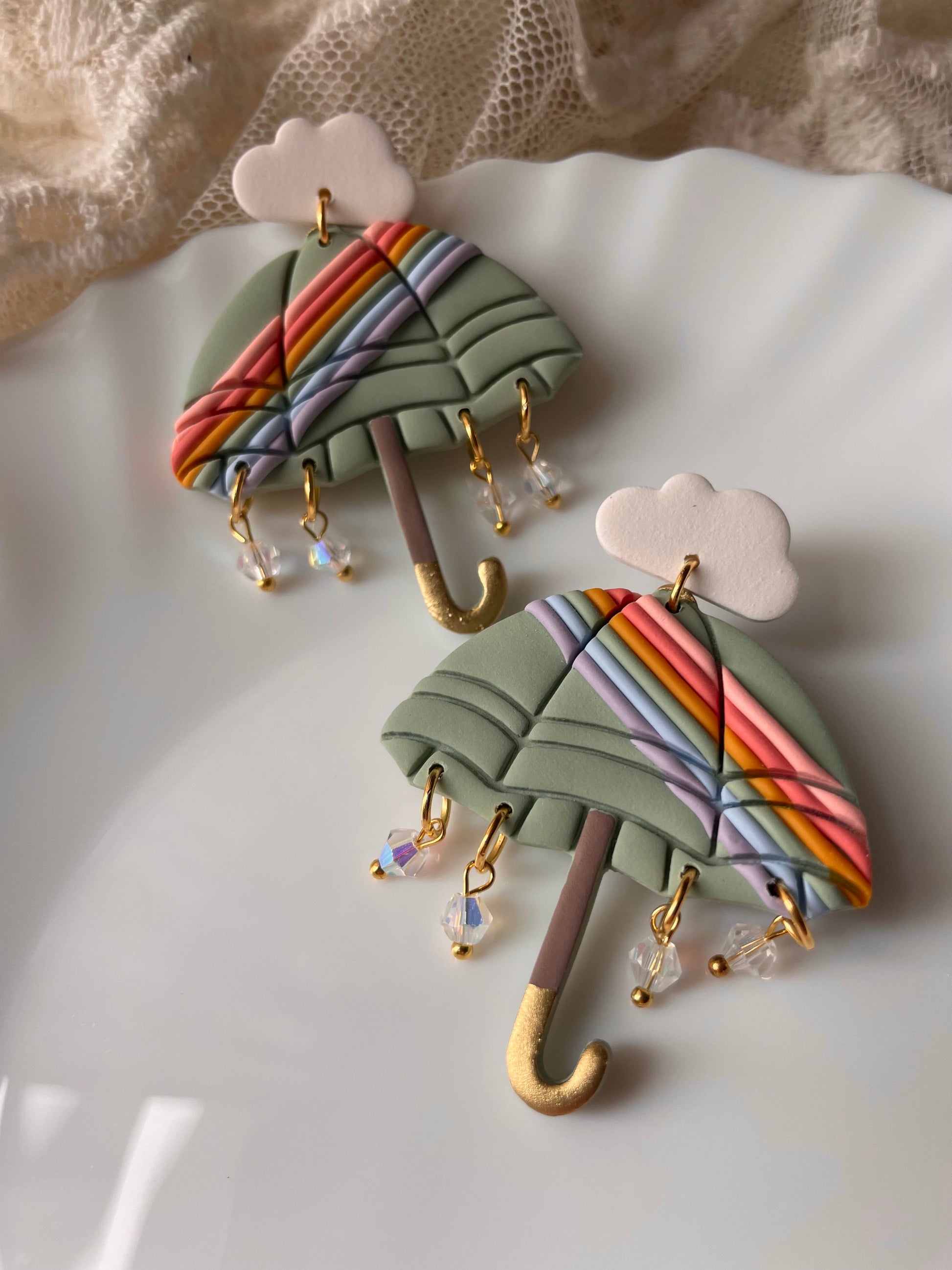 Earrings are made of polymer clay and hardware is surgical grade steel - nickel free. Each piece is rolled, cut, baked, sanded and assembled by hand, so sizes and custom-mixed colors will vary per piece. Due to the handmade nature of my pieces, slight imperfections are inevitable. Every piece is truly one of a kind.