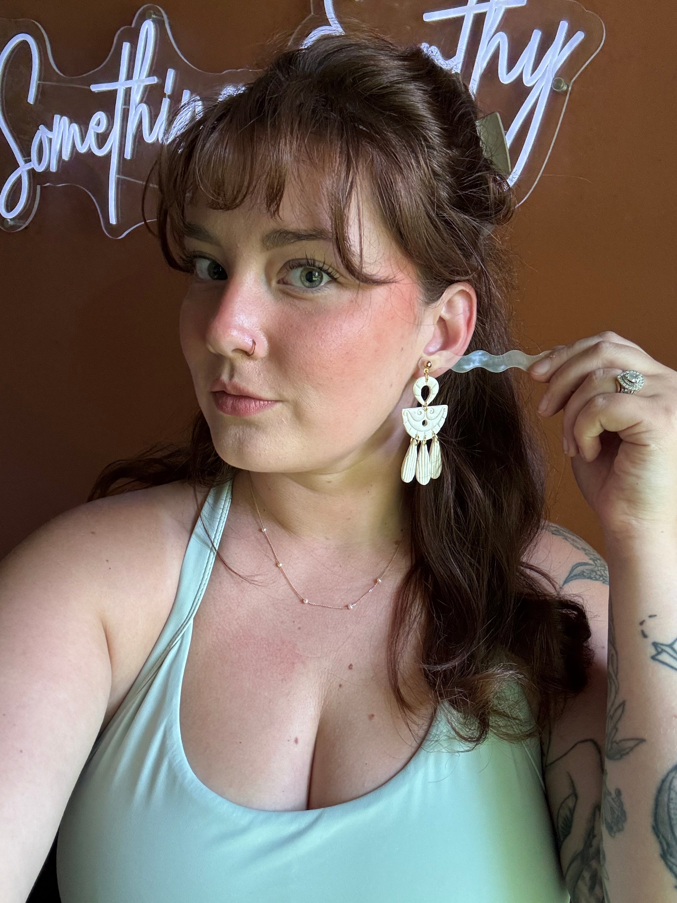 Earrings are made of polymer clay and hardware is 14k gold plated - nickel free. Each piece is rolled, cut, baked, sanded and assembled by hand, so sizes and custom-mixed colors will vary per piece. Due to the handmade nature of my pieces, slight imperfections are inevitable. Every piece is truly one of a kind.