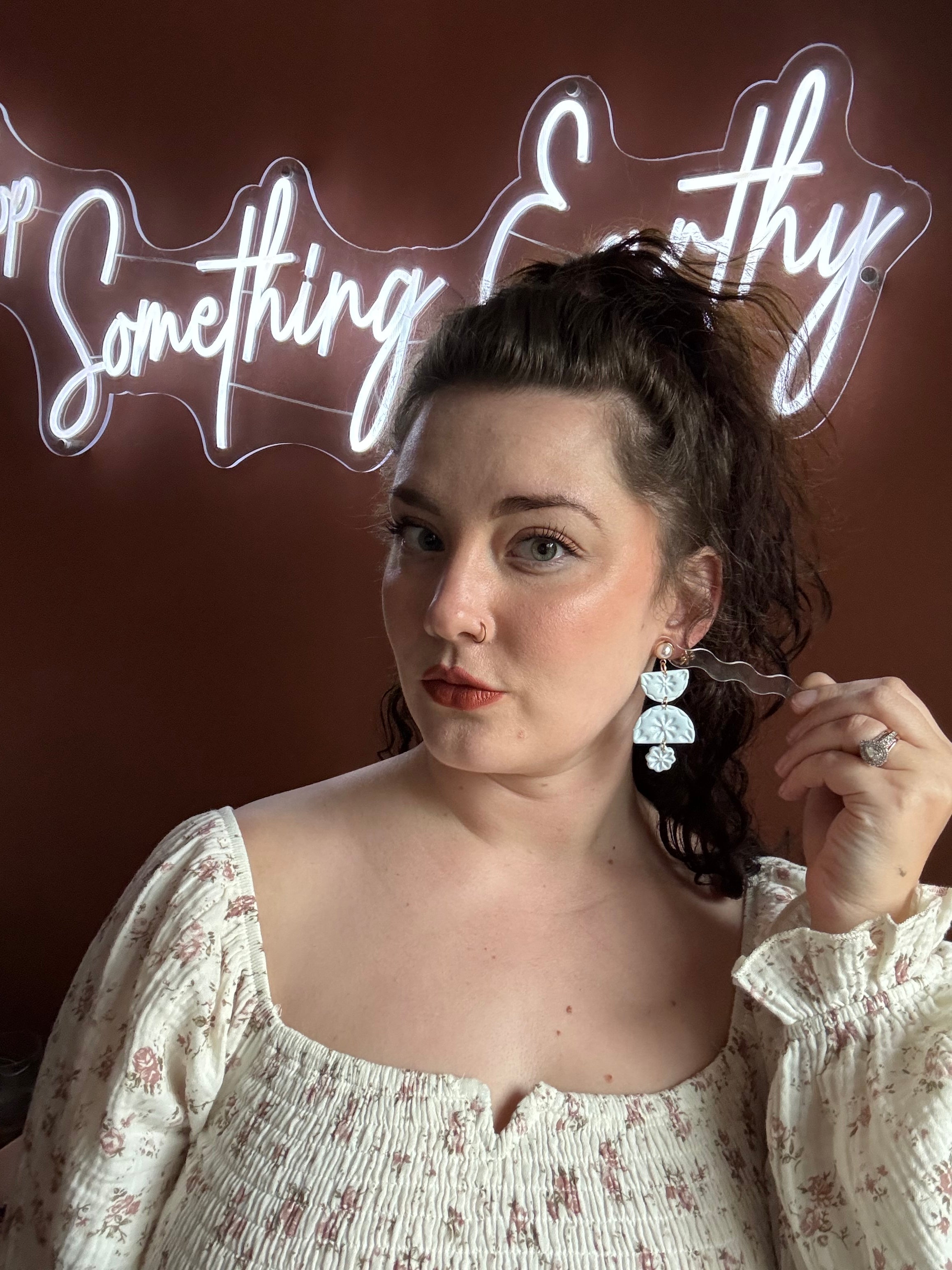 Earrings are made of polymer clay and hardware is 14k gold plated - nickel free. Each piece is rolled, cut, baked, sanded and assembled by hand, so sizes and custom-mixed colors will vary per piece. Due to the handmade nature of my pieces, slight imperfections are inevitable. Every piece is truly one of a kind.