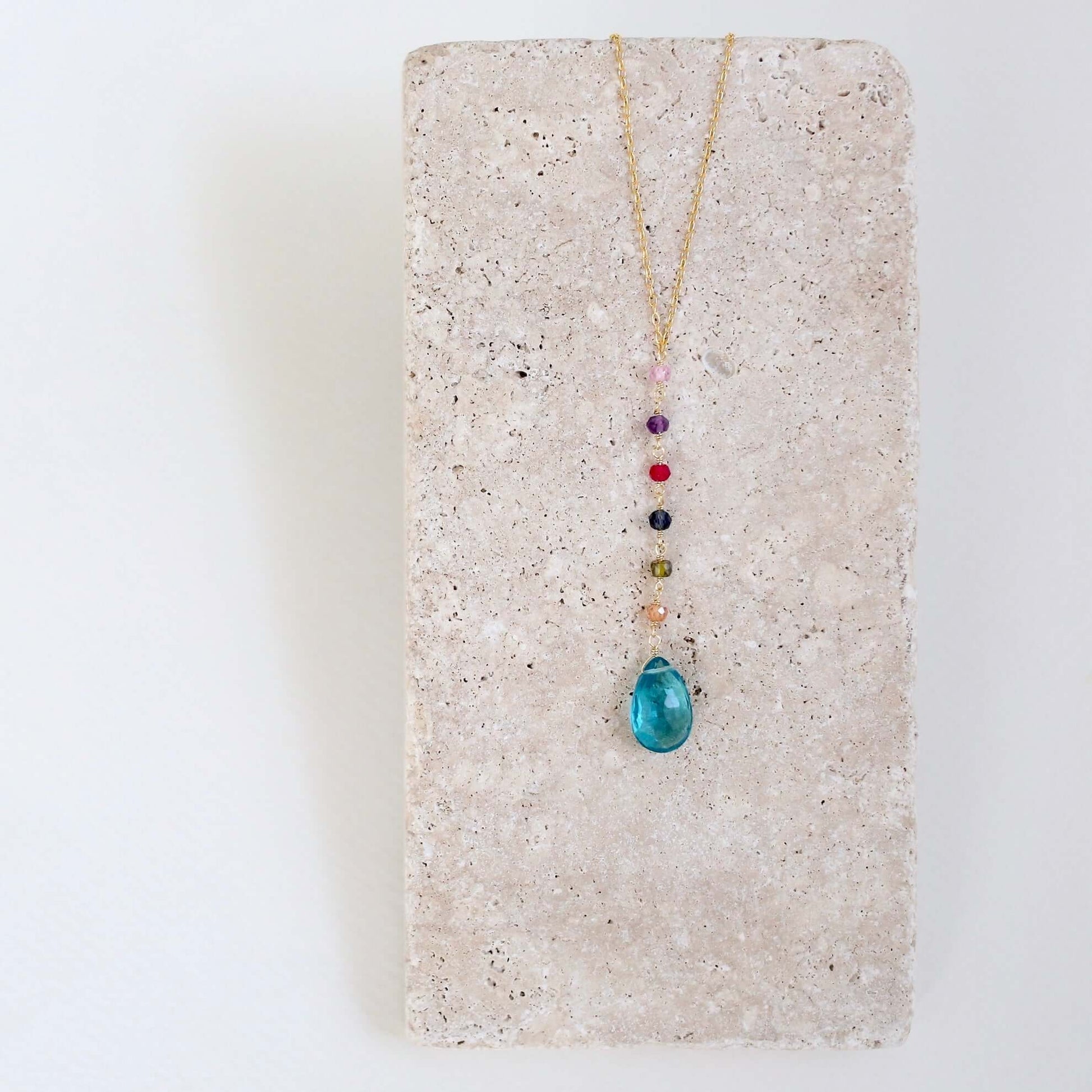 - Neon blue quartz gemstones paired with multi color gemstone accent stones