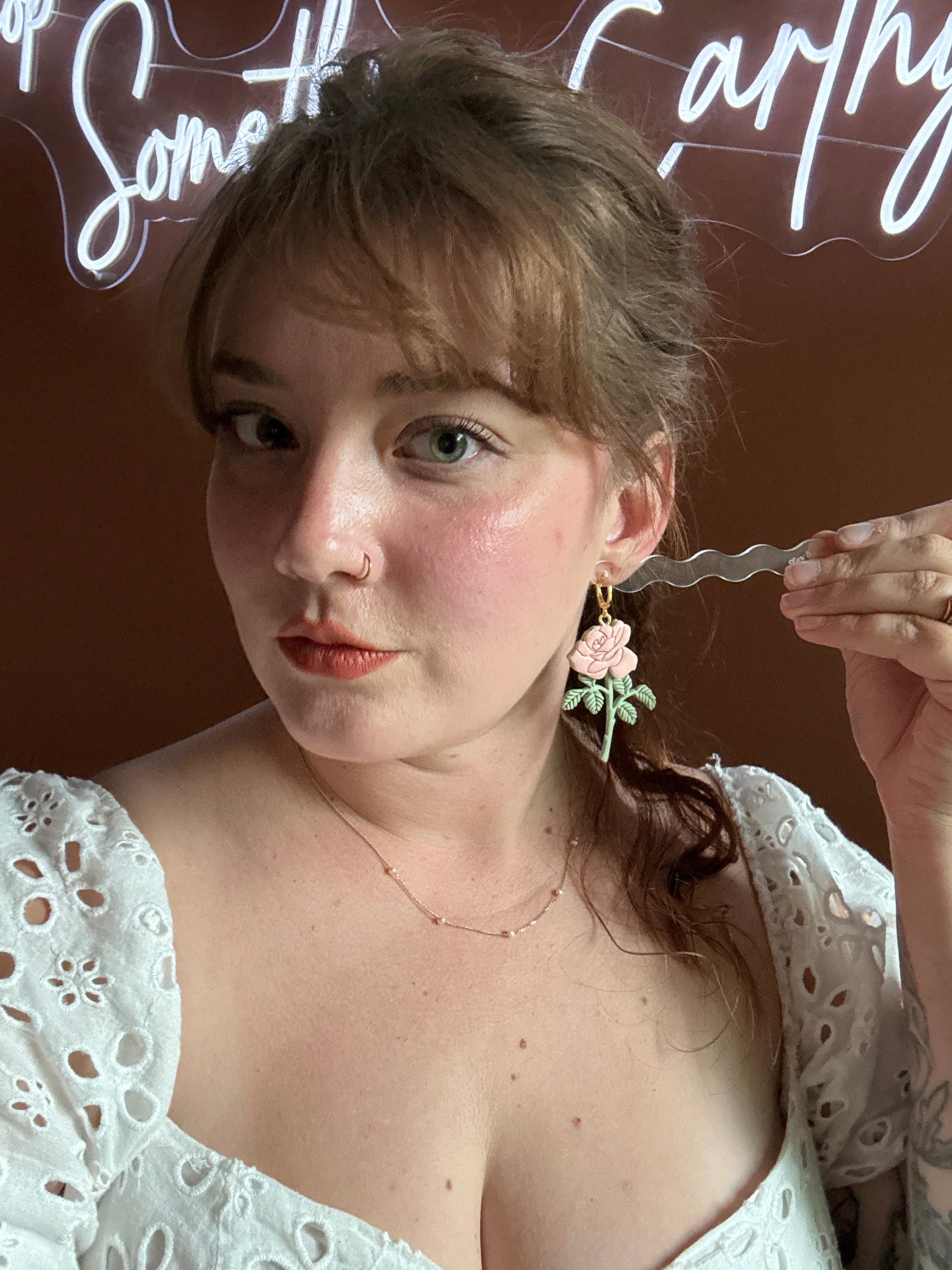 Earrings are made of polymer clay and hardware is 14k gold plated - nickel free. Each piece is rolled, cut, baked, sanded and assembled by hand, so sizes and custom-mixed colors will vary per piece. Due to the handmade nature of my pieces, slight imperfections are inevitable. Every piece is truly one of a kind.