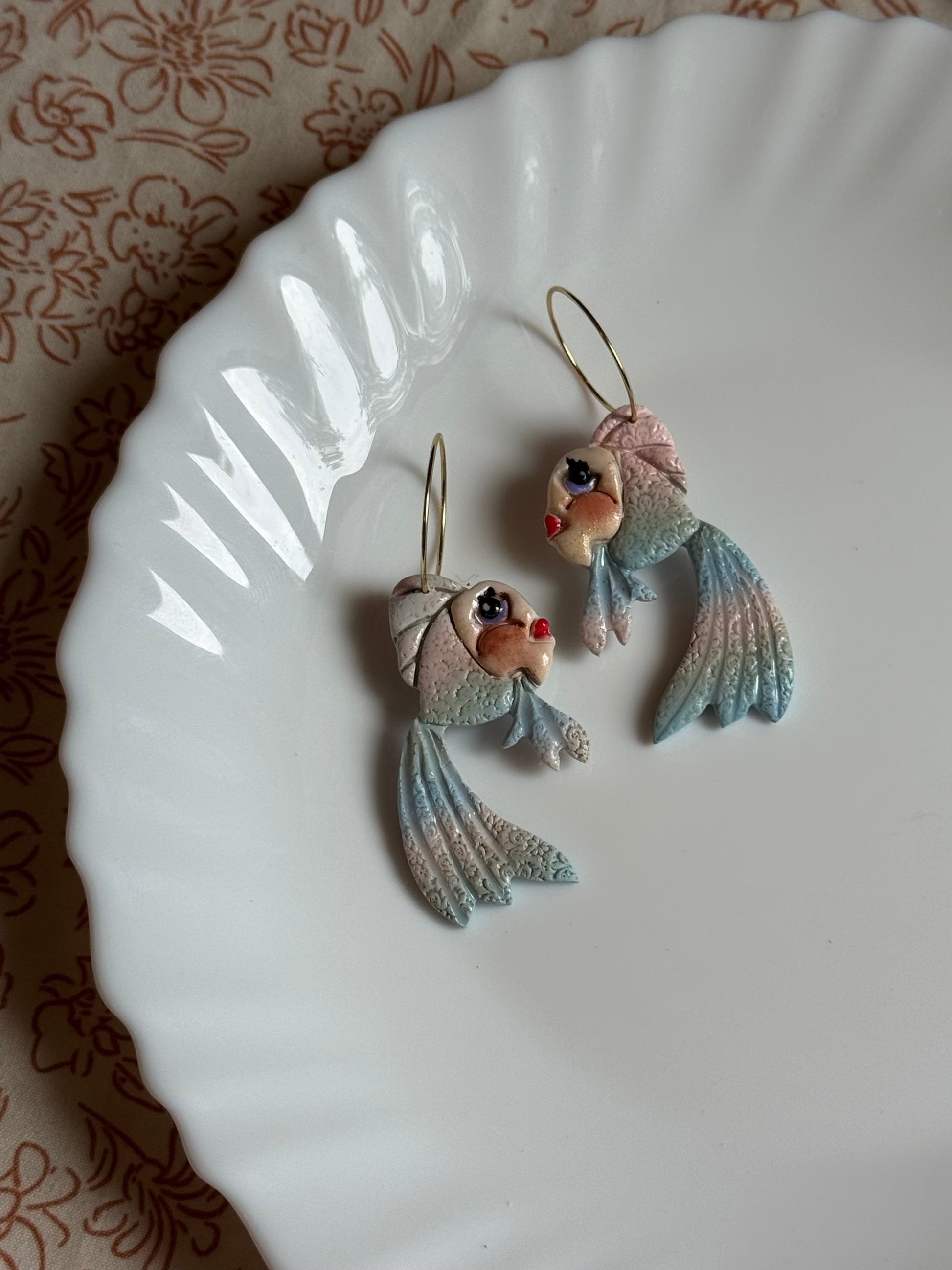 Earrings are made of polymer clay and hardware is 14k gold plated - nickel free. Each piece is rolled, cut, baked, sanded and assembled by hand, so sizes and custom-mixed colors will vary per piece. Due to the handmade nature of my pieces, slight imperfections are inevitable. Every piece is truly one of a kind.