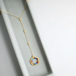 The Halo collection was our very first one. Intended to symbolize the intricate, universal energy woven within us all. This beautiful necklaces is ultra lightweight and perfectly handmade featuring sparkling black spinel gems woven into our unique, mini floating Y pendant design.