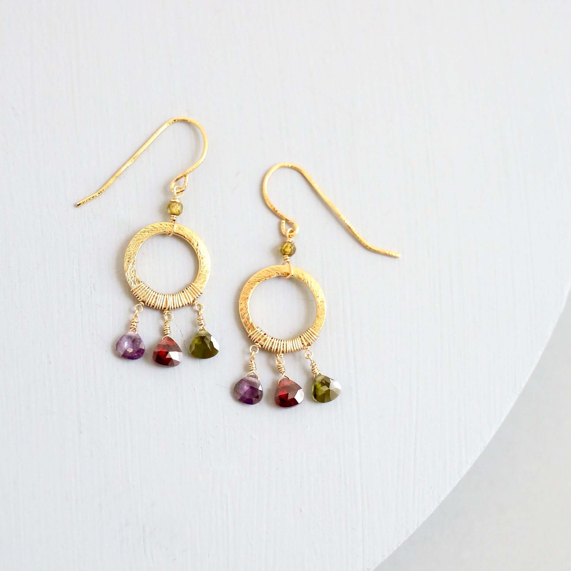 Live the dream (catcher) in our fun and playful Mini Boho Earrings! Uniquely handmade with amethyst, garnet and peridot quartz stones, these lightweight and delicate earrings are the perfect accessory for any outfit. Plus, with 14k gold plating over .925 Italian fine sterling silver, you'll be shining all day!