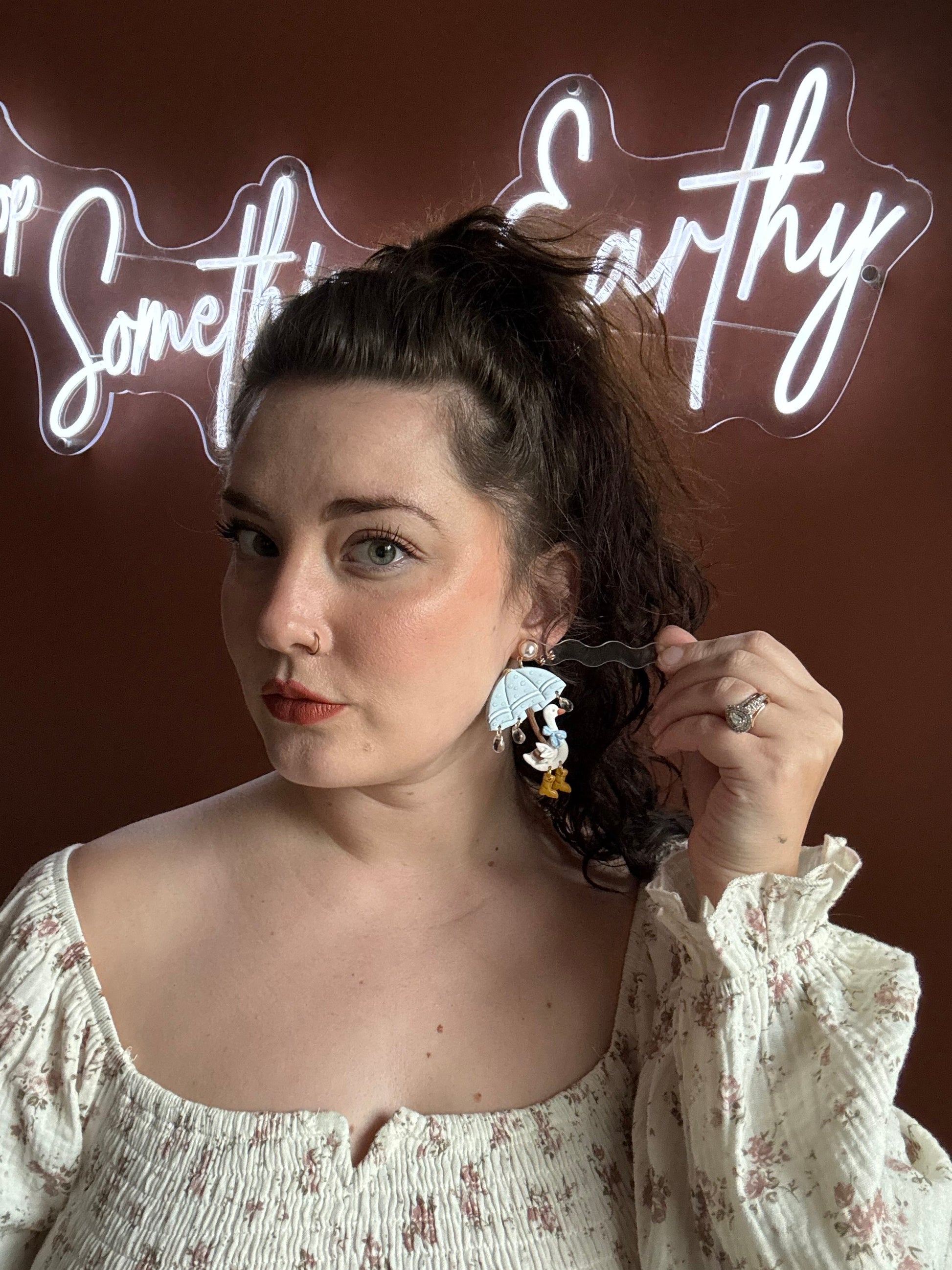 Earrings are made of polymer clay and hardware is 14k gold plated - nickel free. Each piece is rolled, cut, baked, sanded and assembled by hand, so sizes and custom-mixed colors will vary per piece. Due to the handmade nature of my pieces, slight imperfections are inevitable. Every piece is truly one of a kind.