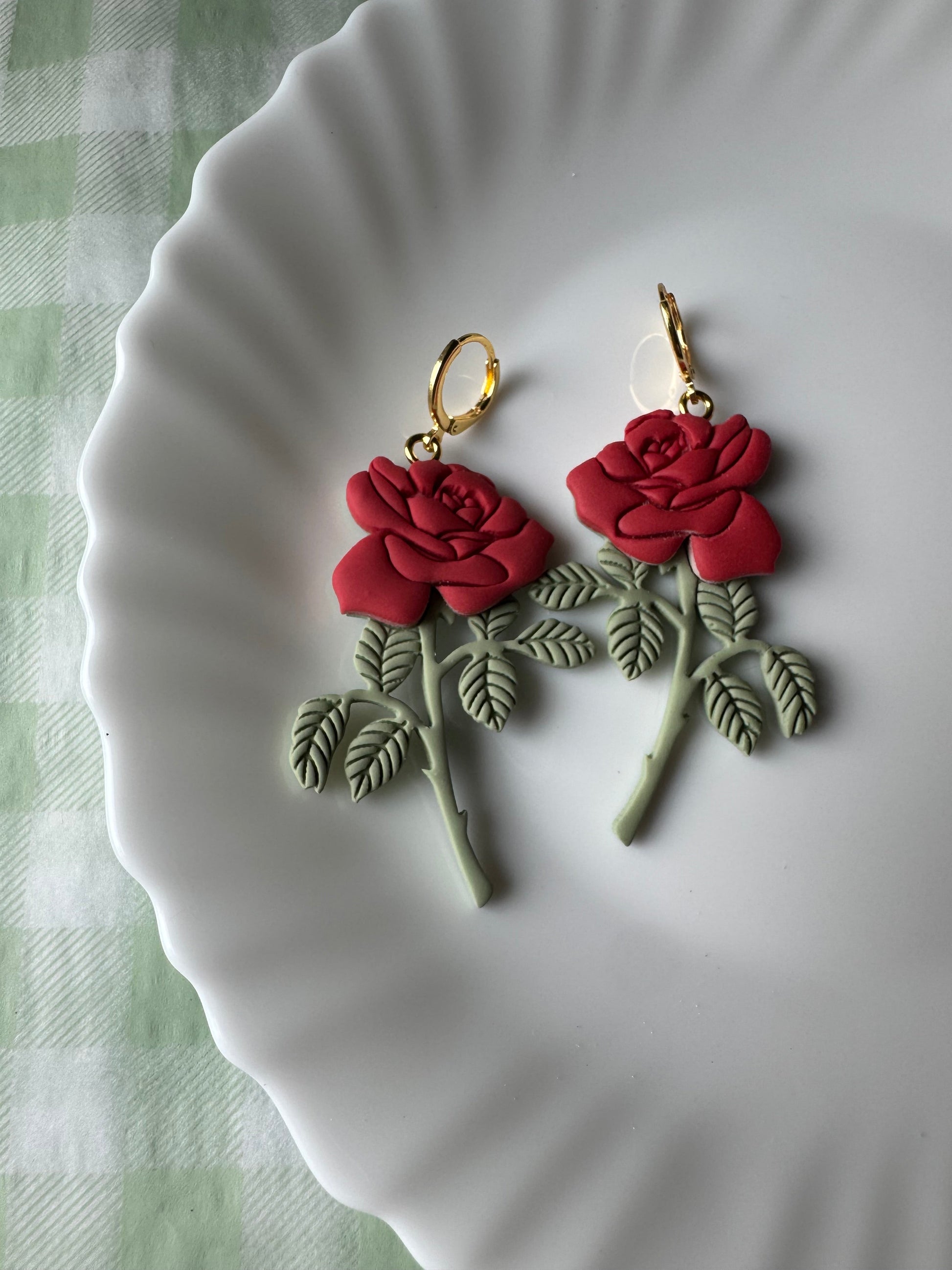 Earrings are made of polymer clay and hardware is 14k gold plated - nickel free. Each piece is rolled, cut, baked, sanded and assembled by hand, so sizes and custom-mixed colors will vary per piece. Due to the handmade nature of my pieces, slight imperfections are inevitable. Every piece is truly one of a kind.