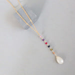 - White Chalcedony gemstones paired with multi color accent stones- 18-20" long with a 2" extender chain