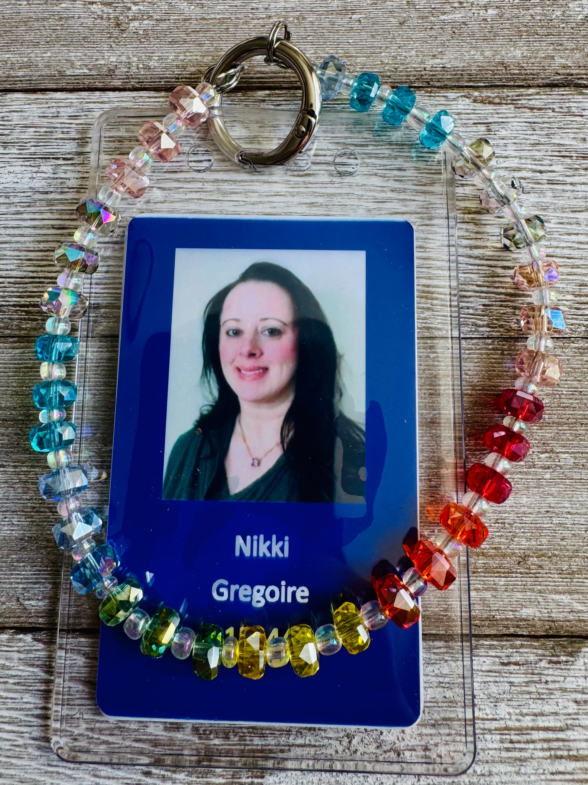 Nikki's Curated Color CollectionRainbow Crystals Beaded ID Badge Lanyard / Crossbody Phone Strap / Bag Chain Purse Charm
