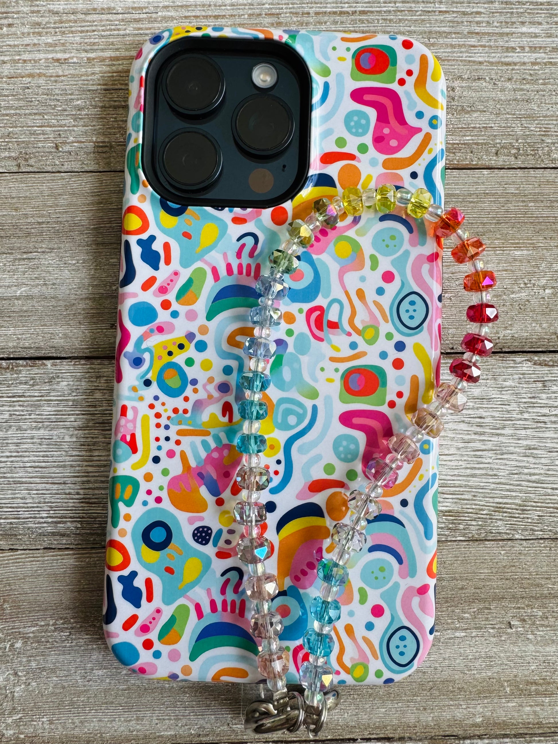 One thing, three functions, AND sparkly rainbow goodness? Say no more! This super colorful, super functional rainbow beaded little beauty can be a keychain, a phone wristlet, or a vibrant chain for your handbag. (Phone wristlet is designed to fit all phones and allow for unencumbered charging.)