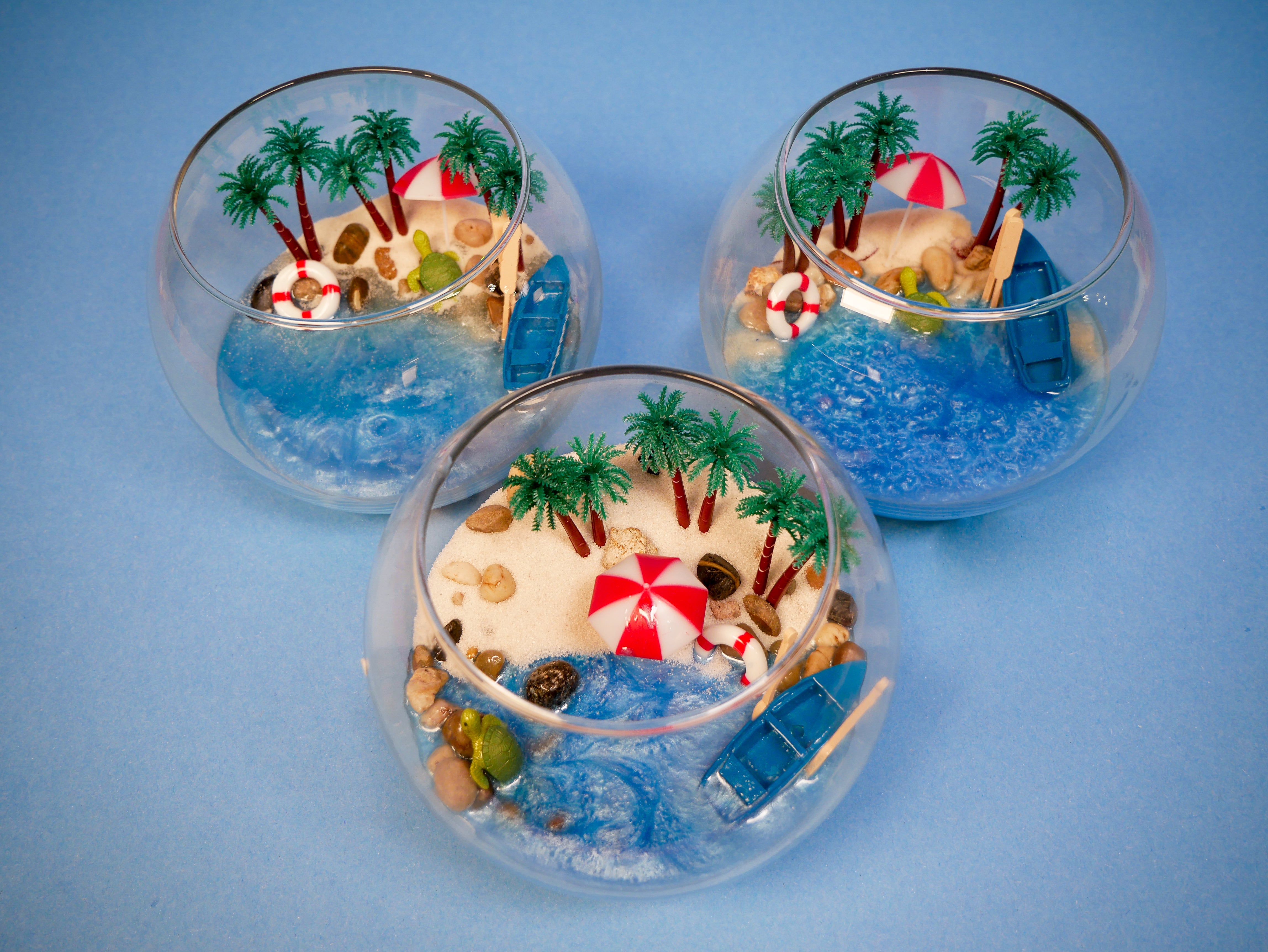Create a stunning and magical terrarium with this Beach Resin Terrarium Kit. This kit includes everything you need to make your own terrarium: sand, beach items, rocks, epoxy resin, glue, and other accessories. With blue mica powder included, you can create a beautiful shimmering blue water feature in your terrarium. You can also customize the watercolor by using acrylic paint or alcohol ink. While working with resin can be messy, the process is enjoyable and the result is worth it. Add this Beach Resin Terrarium to any room in your home to create a beautiful and peaceful escape.
