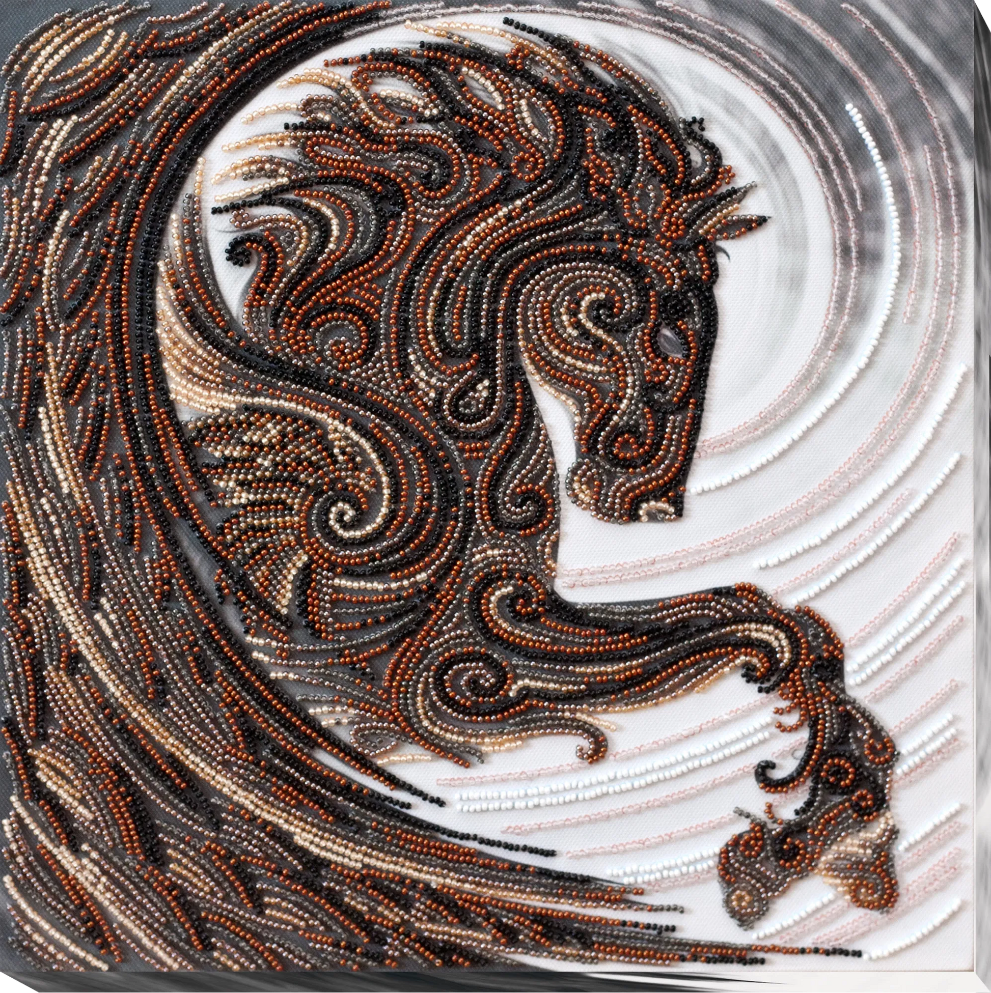 In each carefully assembled box Main Bead Embroidery Kit Black Pegasus (Deco Scenes) after purchase and delivery you will find: a large piece of natural art canvas with a printed image-scheme (fabric for embroidery) larger than the size of the picture - 300 x 300 mm. - with enough stock to make it convenient to embroider and design the finished picture! The world's best beads Preciosa Ornela (Czech Republic), with "stock" - more than 11688 beads, high-quality bead needles from Japan , and most importantly - detailed instructions, the scheme for beadwork with a key, specially developed by our designers for each plot separately and already applied to the canvas! There is a possibility of gallery design of the embroidered work (without a baguette and passe-partout). (8 colours), Dimensions 30*30cm / 11,81*11,81in. Made in Ukraine.