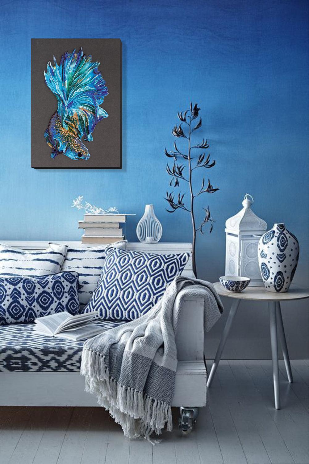 Kit contains: In each carefully assembled box Main Bead Embroidery Kit Blue gold (Animals) after purchase and delivery you will find: a large piece of natural art canvas with a printed image-scheme (fabric for embroidery) larger than the size of the picture - 390 x 270 mm. - with enough stock to make it convenient to embroider and design the finished picture! The world's best beads Preciosa Ornela (Czech Republic), with "stock" - more than 5266 beads, high-quality bead needles from Japan , and most importantly - detailed instructions, the scheme for beadwork with a key, specially developed by our designers for each plot separately and already applied to the canvas! It is so convenient and clear that even a person who wants to try himself in beadwork for the first time, and buy this kit - will understand everything in 5 minutes! The set is additionally completed with Preciosa beads #13 - microbeads - 7 colors, a needle for embroidery with microbeads. The possibility of gallery design of embroidered work is provided (without baguette and passepartout) (Beads 18 colours). Dimensions 27*39cm / 10,63*15,35in. Made in Ukraine.
