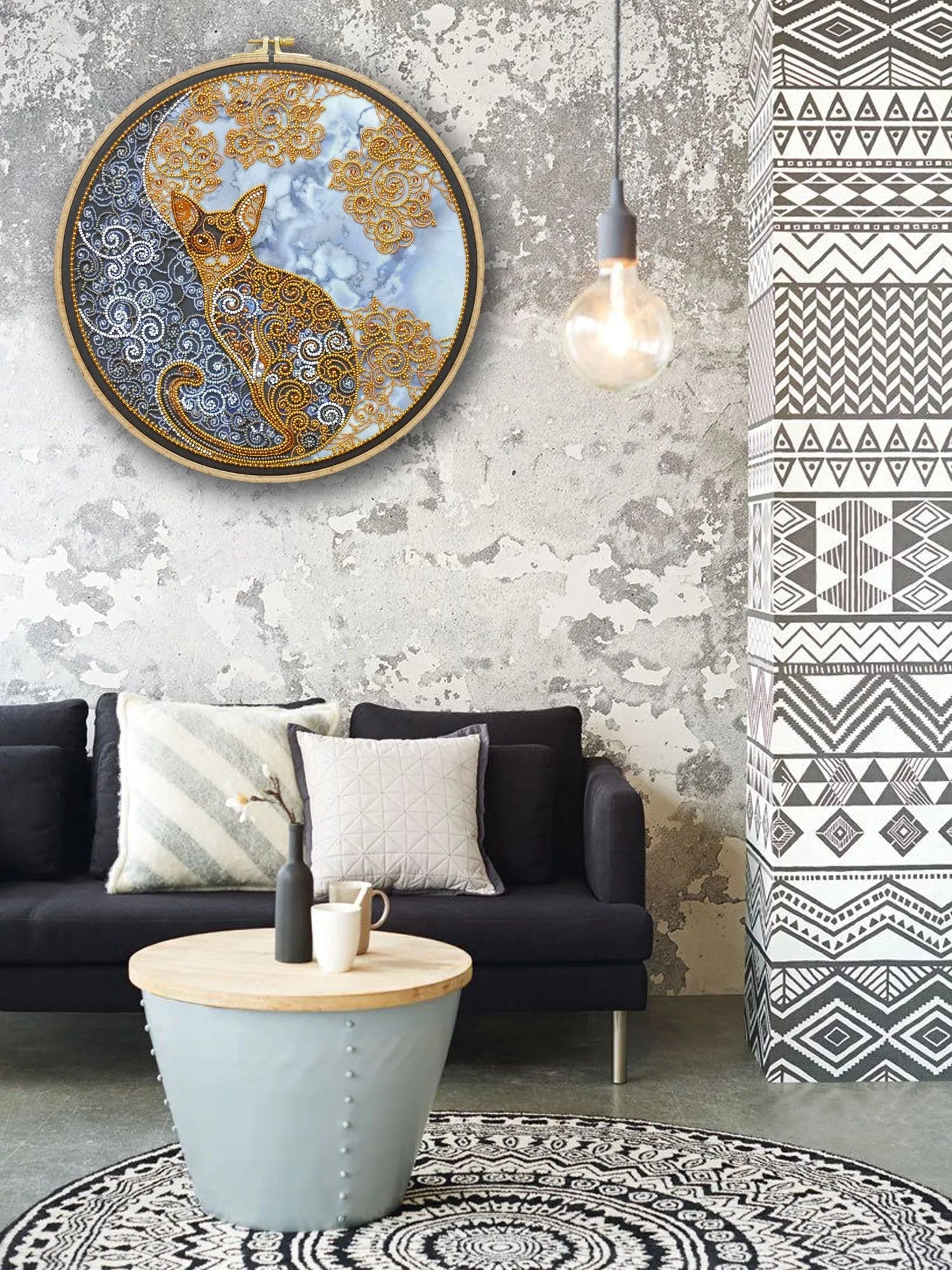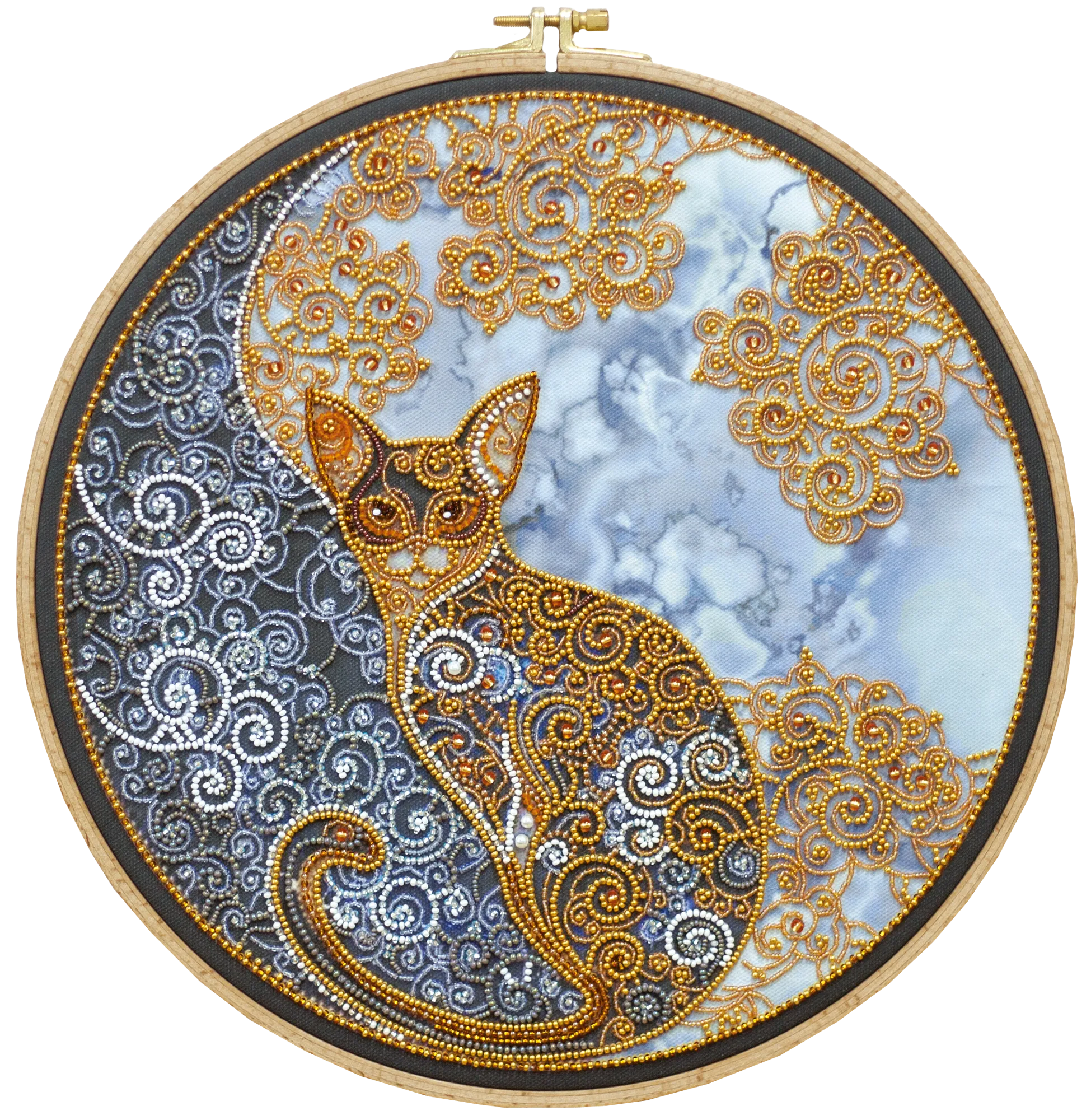 In each carefully assembled box Main Bead Embroidery Kit Moon cat (Deco Scenes) after purchase and delivery you will find: a large piece of natural art canvas with a printed image-scheme (fabric for embroidery) larger than the size of the picture - 320 x 320 mm. - with enough stock to make it convenient to embroider and design the finished picture! The world's best beads Preciosa Ornela (Czech Republic), with "stock" - more than 11423 beads, high-quality bead needles from Japan , and most importantly - detailed instructions, the scheme for beadwork with a key, specially developed by our designers for each plot separately and already applied to the canvas!