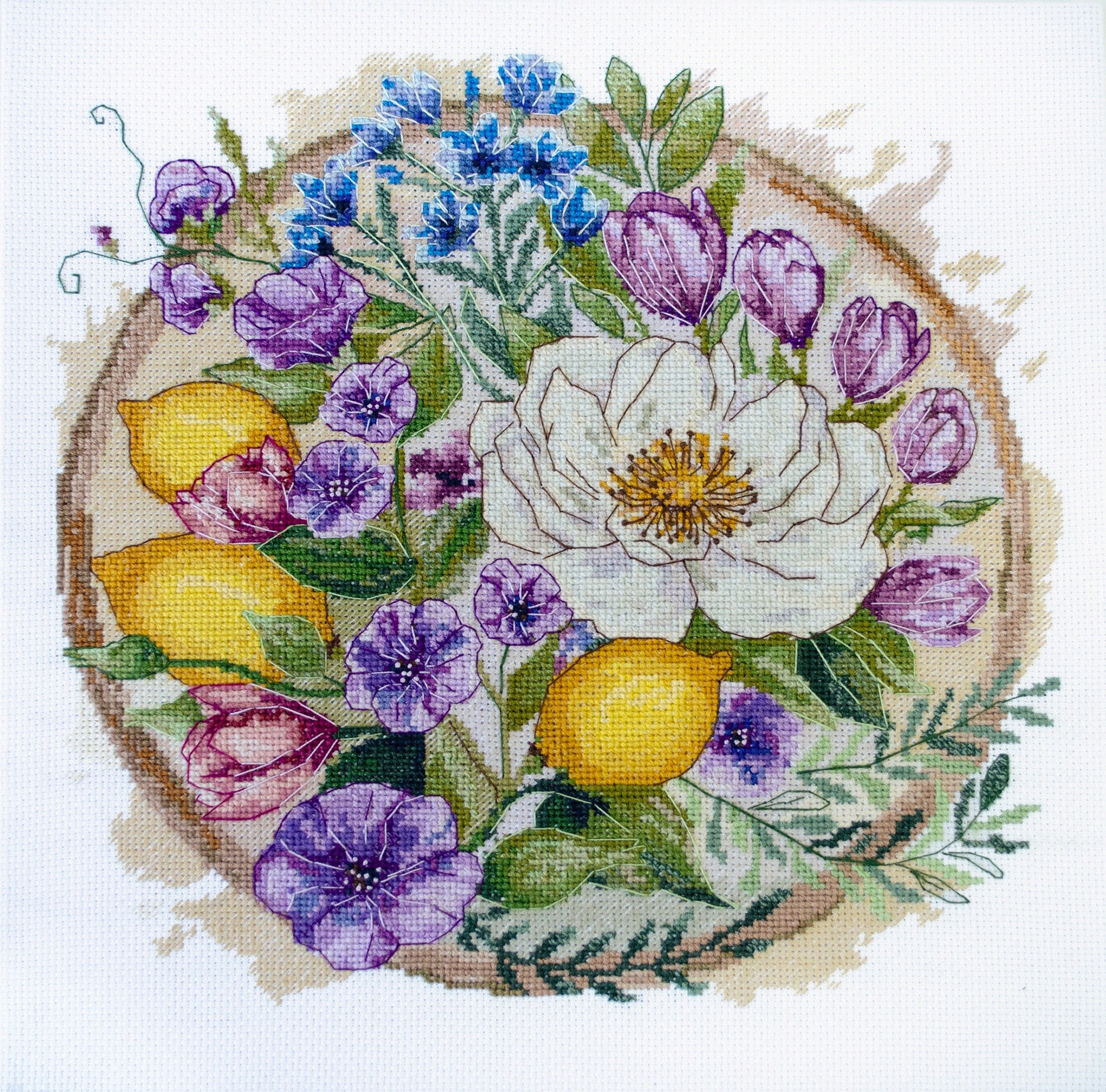 The set is completed with a canvas 320*320mm, white color, count 18, threads 104m. (56 colours). Dimensions 26*26cm / 10,24*10,24in. Made in Ukraine.