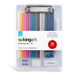 KINGART® Studio Drawing Set with Drawing Board, Set of 31, Sketching Tools and Detailing Accessories