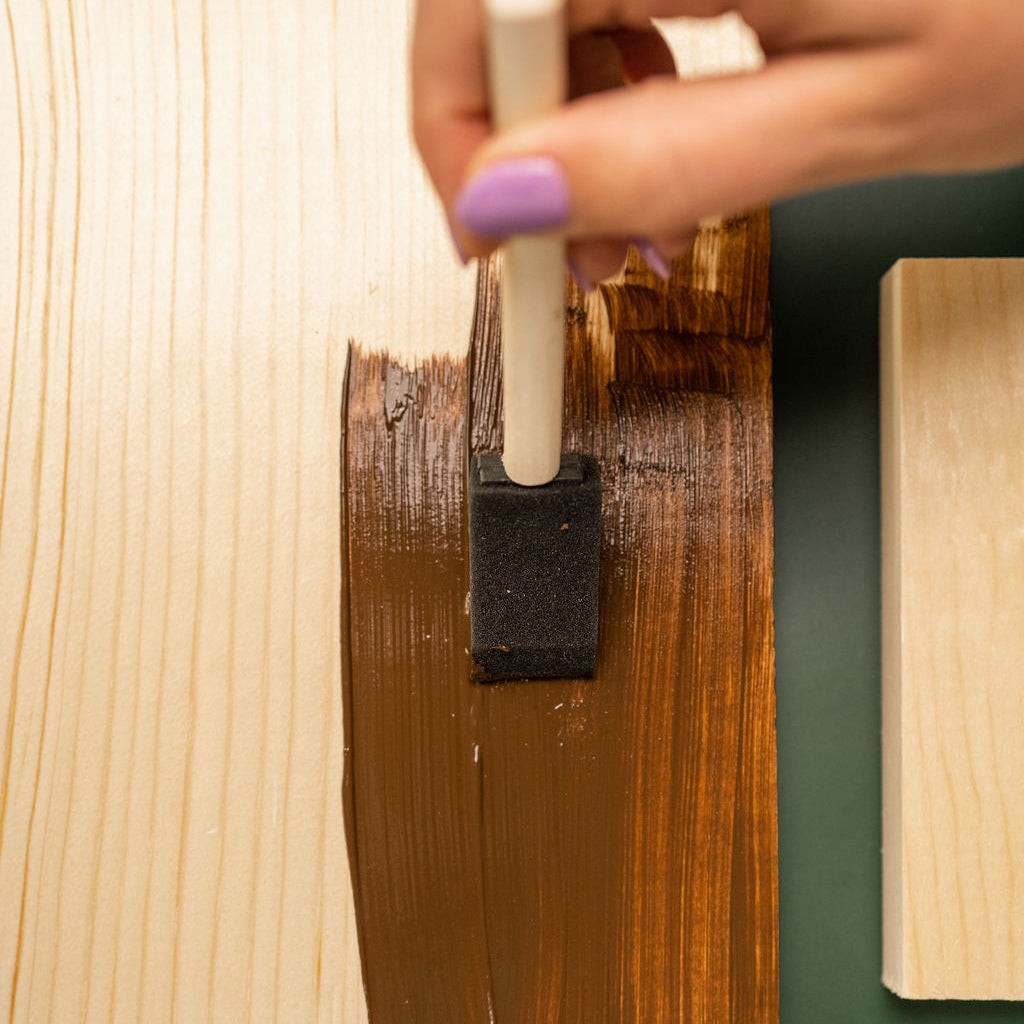 This craft kit comes with holiday designs, gel wood stain, white paint, chalkboard paint, and all the materials needed to decorate your chalkboard. This wood-building kit includes all the wood, tools, and fasteners needed to make a sign or serving tray. Crafters will need paper towels.