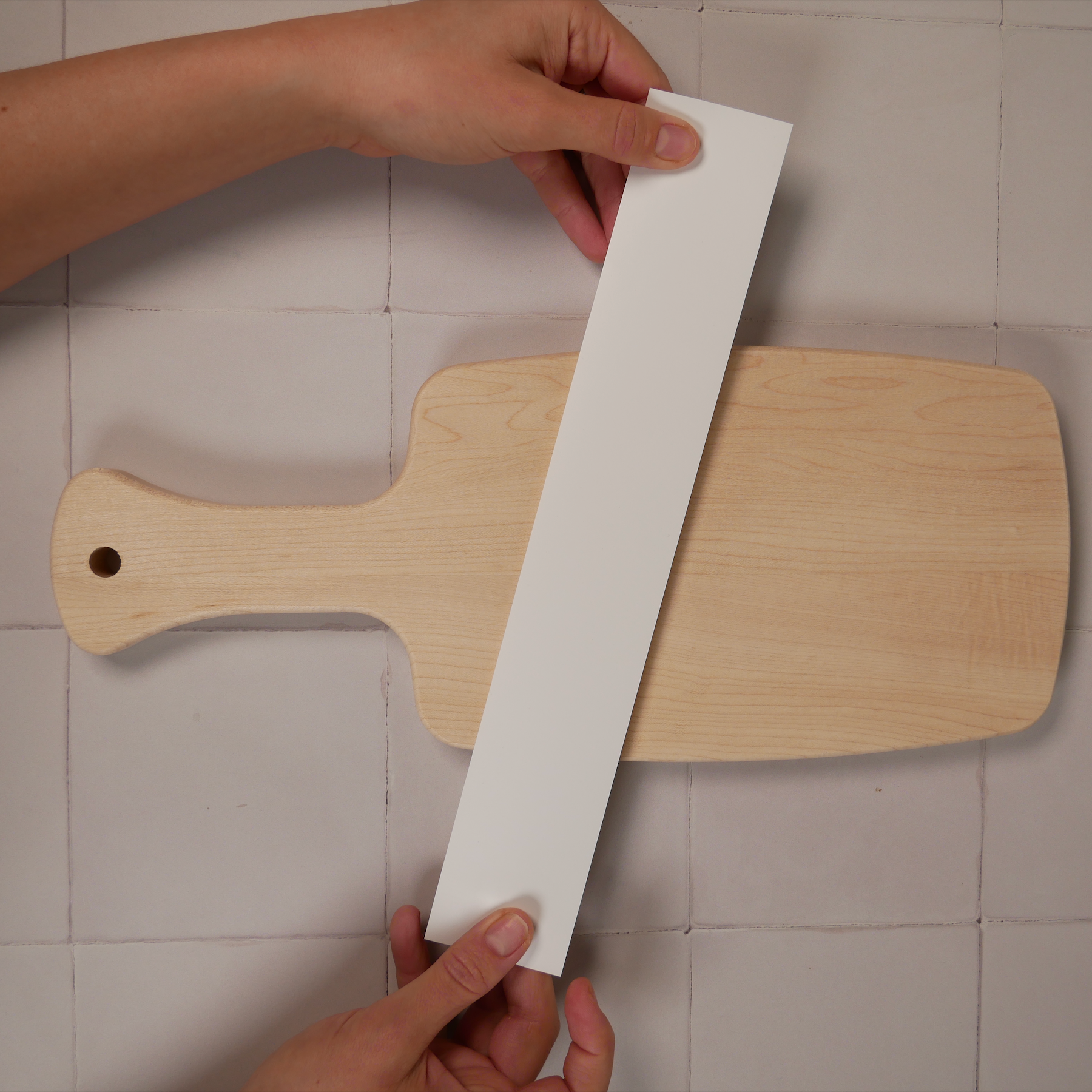 This project takes about one hour. The resin requires 24 to 48 hours to cure. The cutting board has a 5x2-inch handle with a 9.5x5.5-inch base.