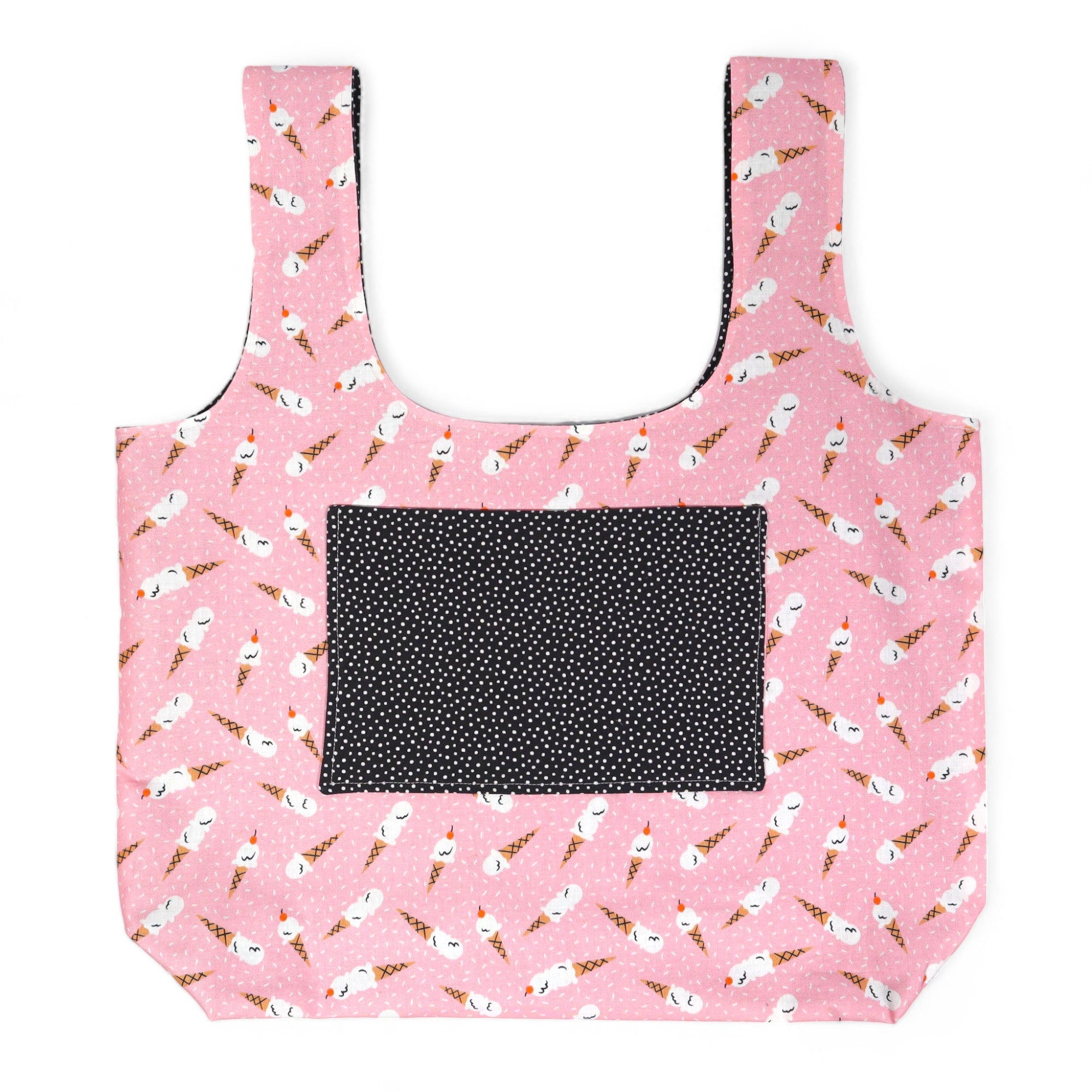 Now you will always have a stylish shopping bag handy! These bags are designed to fold up into the pocket so you can toss them in your purse and take them anywhere. The lining not only adds strength, but also means no exposed seams and makes the bag reversible. One trip to the market and everyone will be asking where you got your bag!