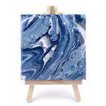 Featuring swirling navy, gray, white, and metallic silver colors on a 4-inch square canvas, each miniature is sealed with archival-quality, UV protectant clear varnish and comes with a wood display easel.