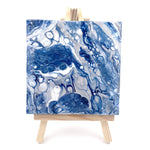 Featuring swirling navy, gray, white, and metallic silver colors on a 4-inch square canvas, each miniature is sealed with archival-quality, UV protectant clear varnish and comes with a wood display easel.