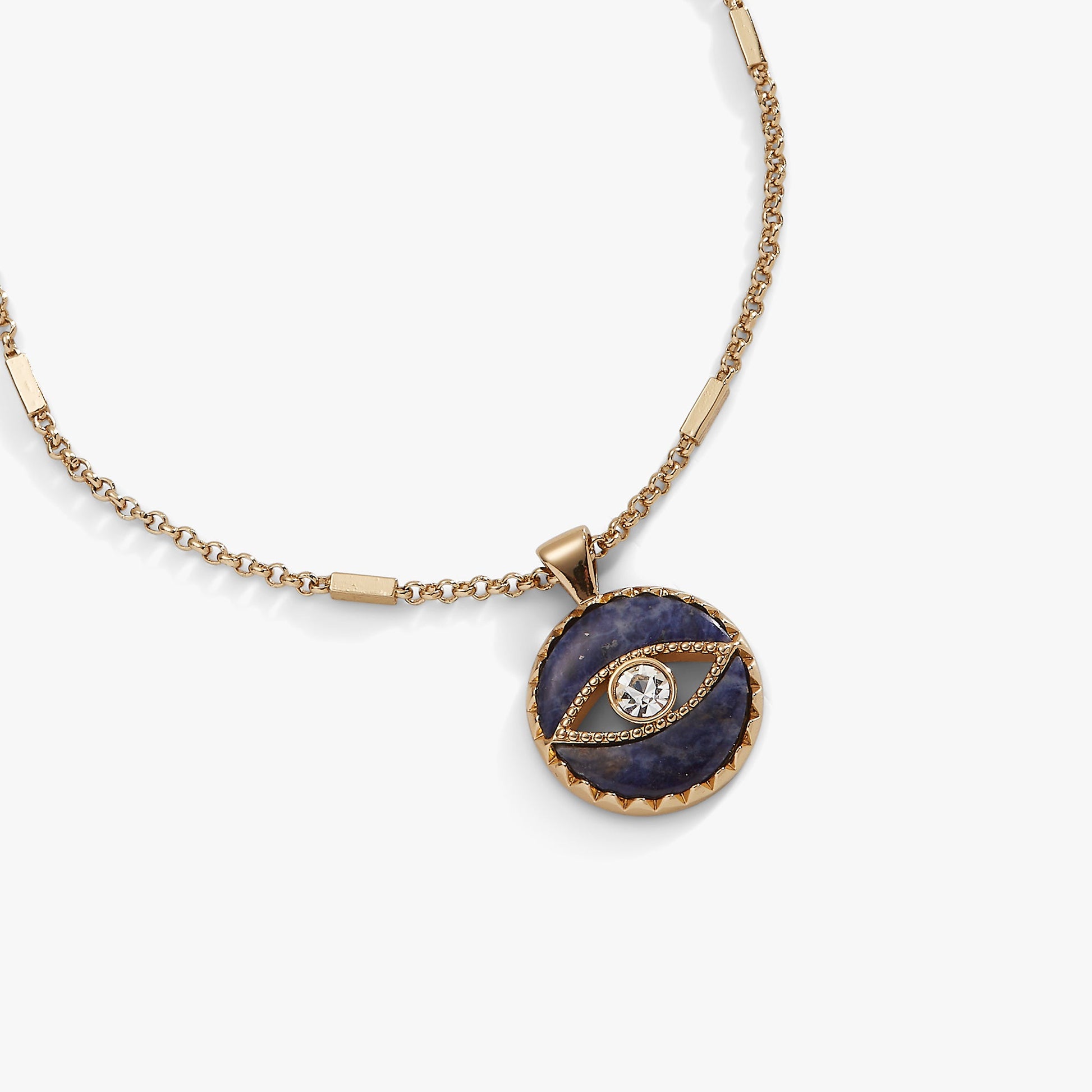 Go about your day with confidence when you’re wearing the protection of the evil eye. This powerful charm is set on a genuine Sodalite stone pendant with a crystal-centered evil eye symbol. Crafted with an adjustable bar chain necklace, this piece is perfect for layering.