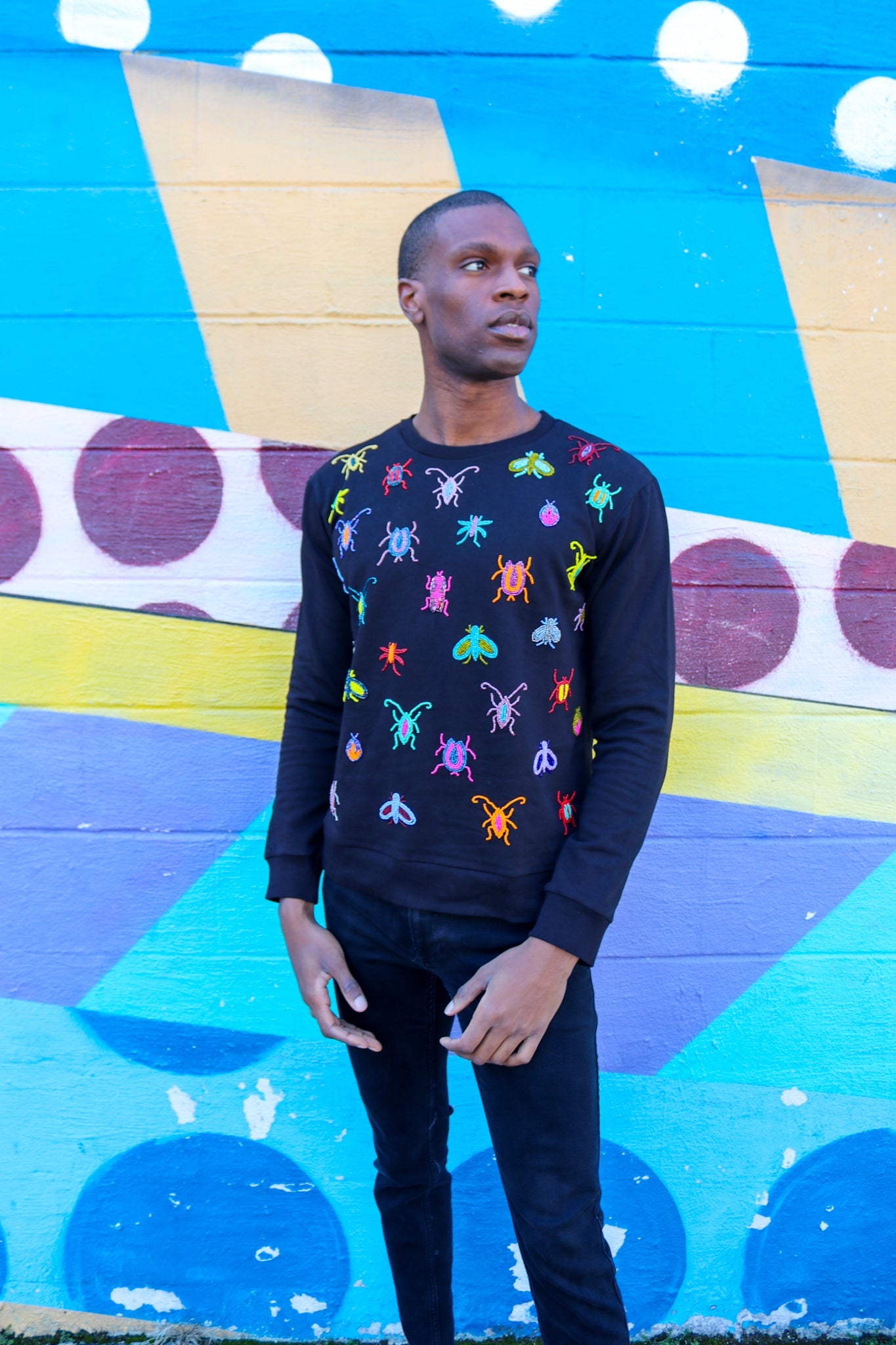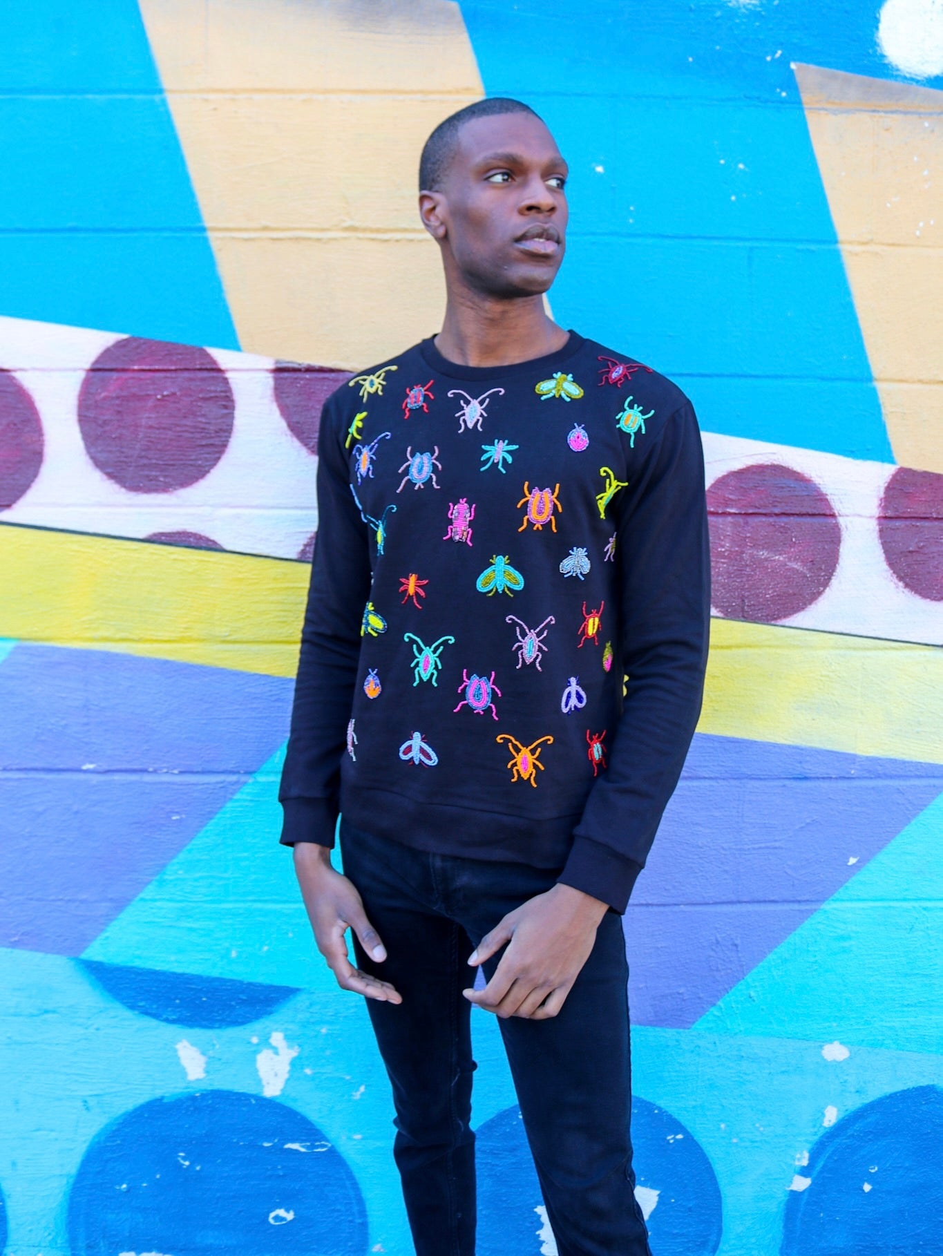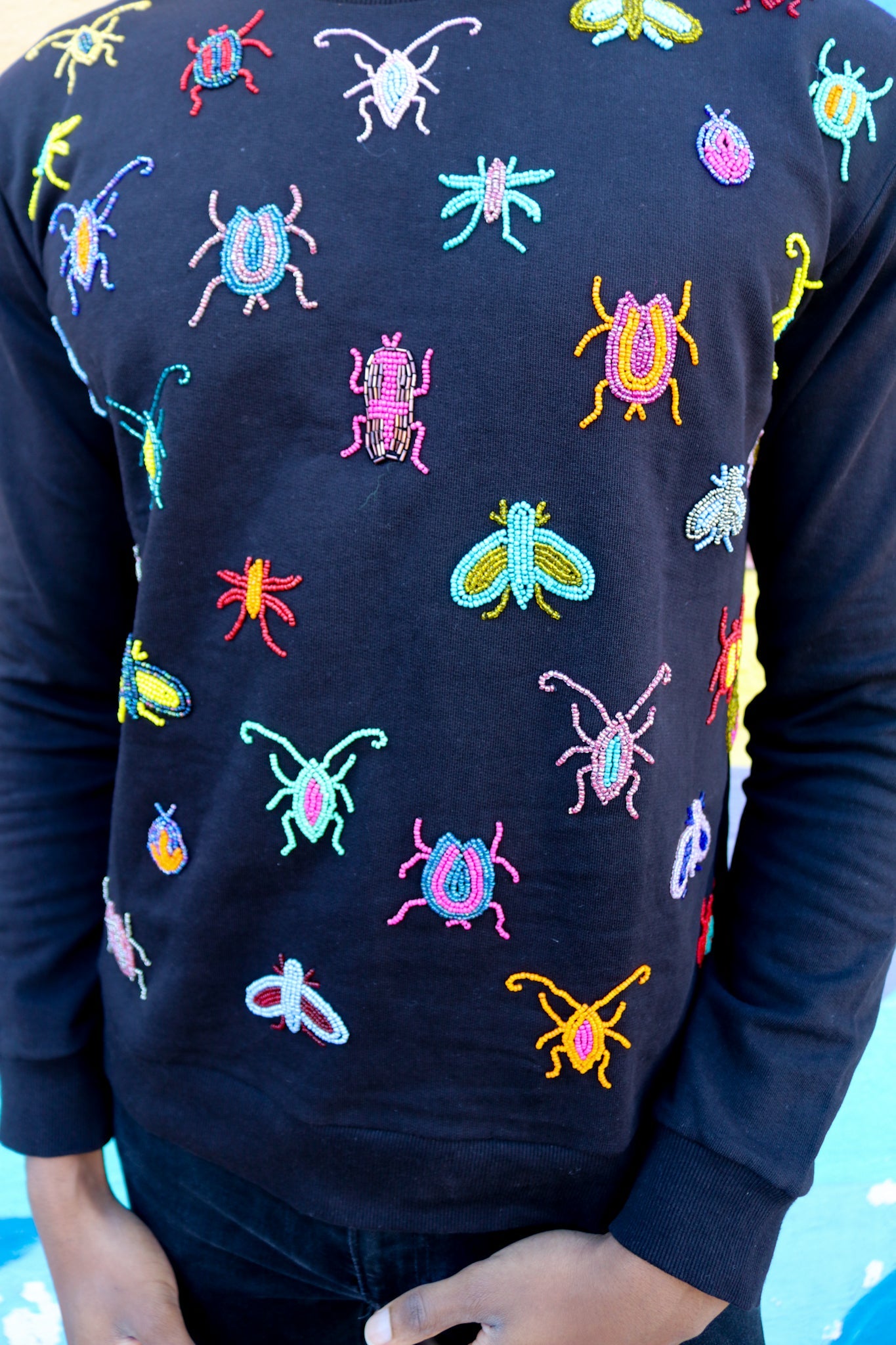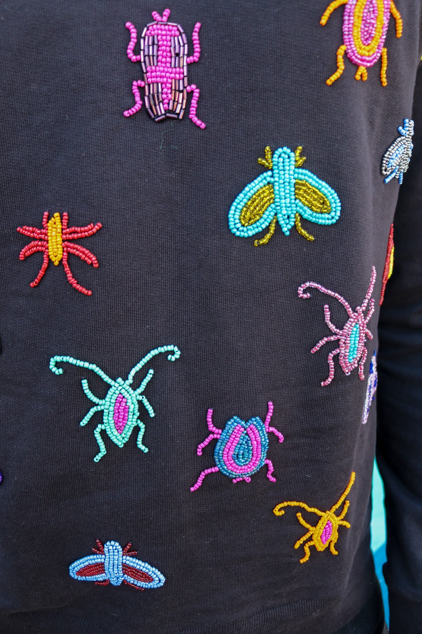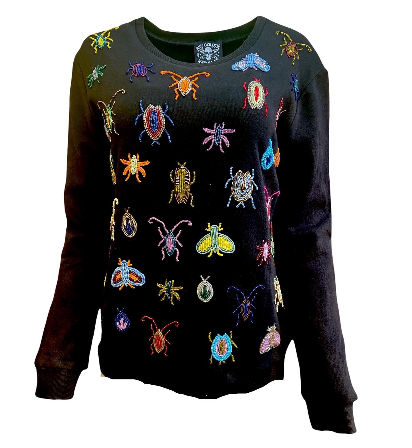 Need to spruce up your wardrobe? Any Old Iron has found the ant-ser to your prayers: the Any Old Iron Mens Beautiful Creatures Sweatshirt! Loved for its painstaking attention to detail, this hand-beaded sweatshirt features a unique array of vibrant insects embroidered into a plain, black sweater for a striking contrast. The bugs are made out of a variety of beads, from metallic to matte, which brings them to life. It is the perfect sweatshirt for those cooler days and even cooler nights. Rock this unique piece with jeans or leather! No matter how you wear it, you will drive everyone hoppin' mad with your badass style!