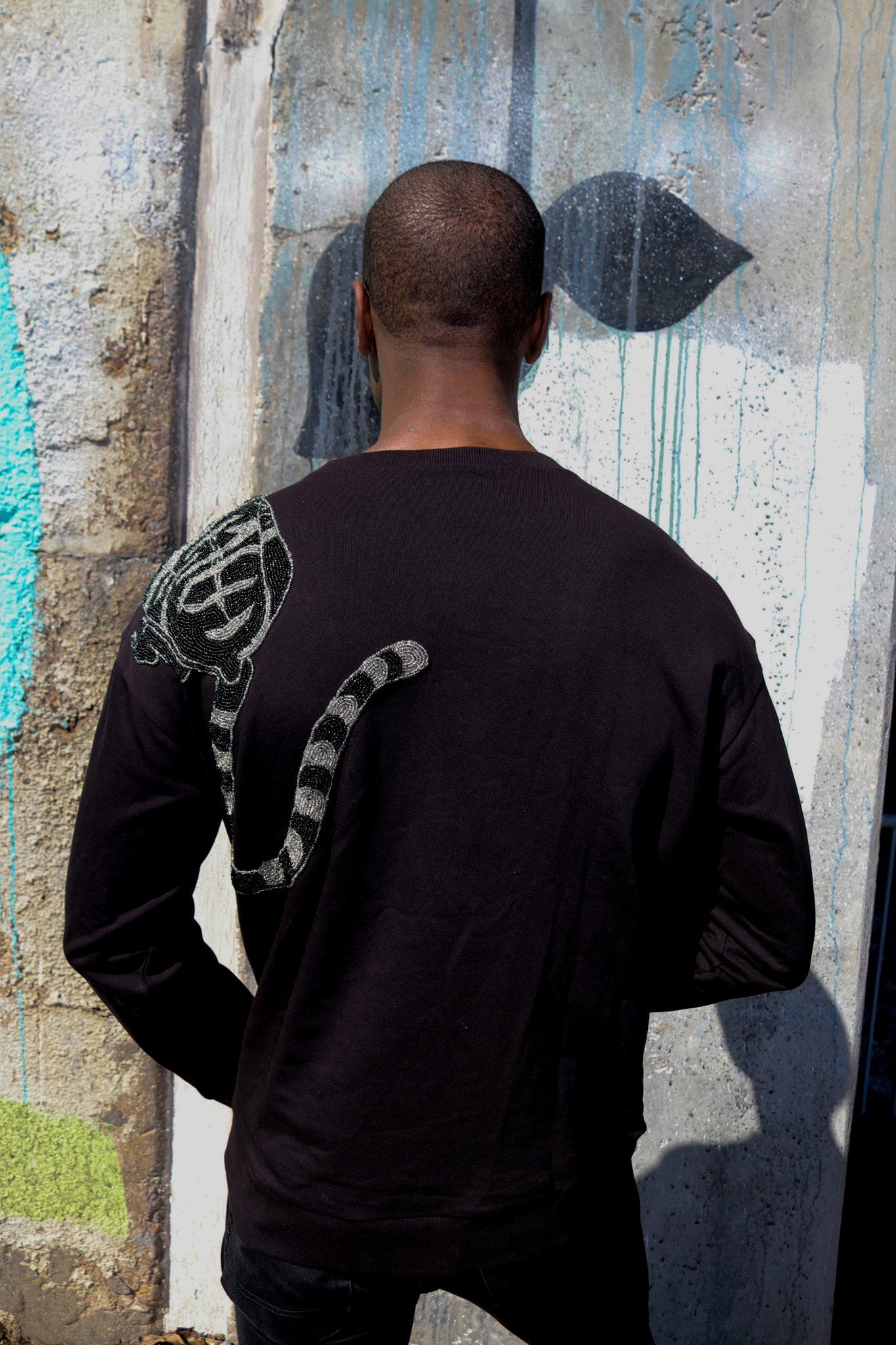 To care for sweatshirt, please either have it dry-cleaned or hand-washed. If you do choose to hand wash your sweatshirt, please be sure to use cool water and a mild soap. Rinse gently with your fingertips and allow the garment to hang to dry. Since this sweatshirt is made out of 100% cotton and hand-beaded embellishments, any other form of care may damage the design.