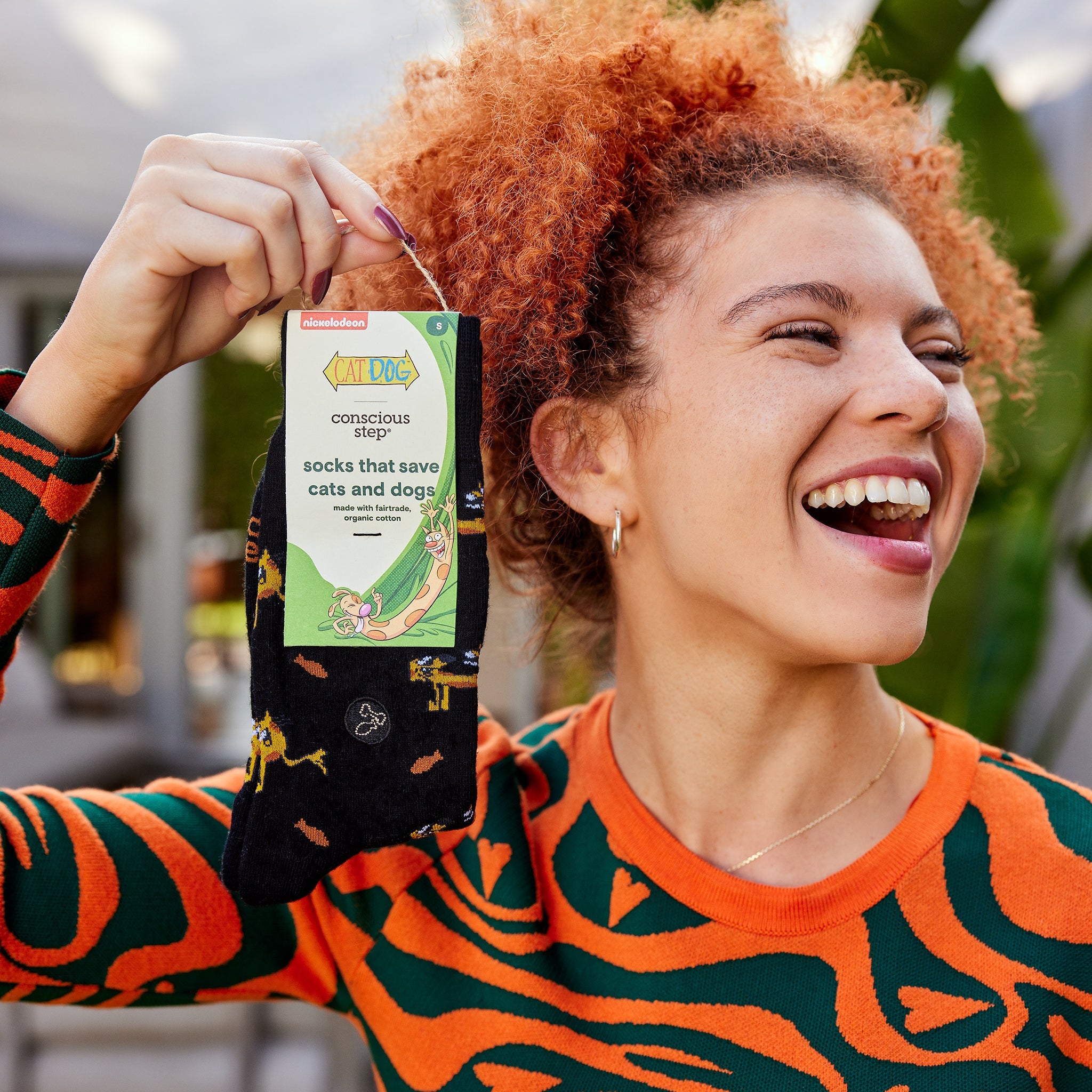 One fine day with a woof and a purr…these socks were born! Decorated with the wacky CatDog duo, you won’t ever want to part from this cozy black and orange pair.