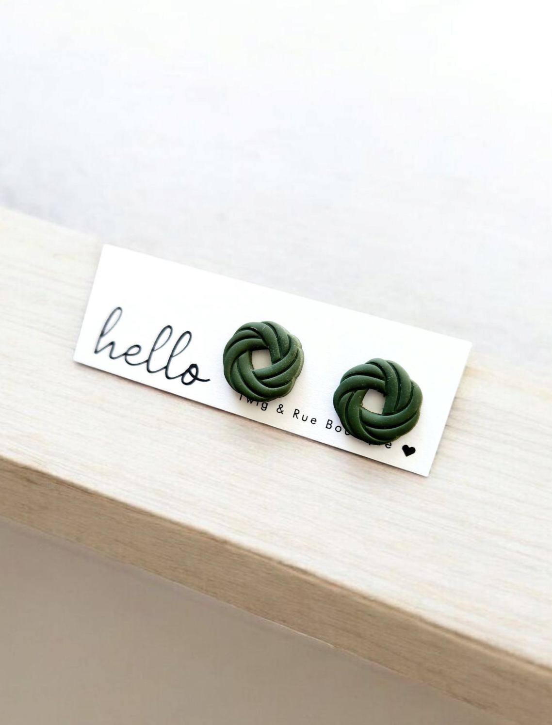 Add a pop of color to your daily wardrobe with our handmade Clay Knot Studs. These earrings are the perfect everyday accessory, adding a touch of fun and personality to any outfit. Made with clay, they are both unique and stylish.