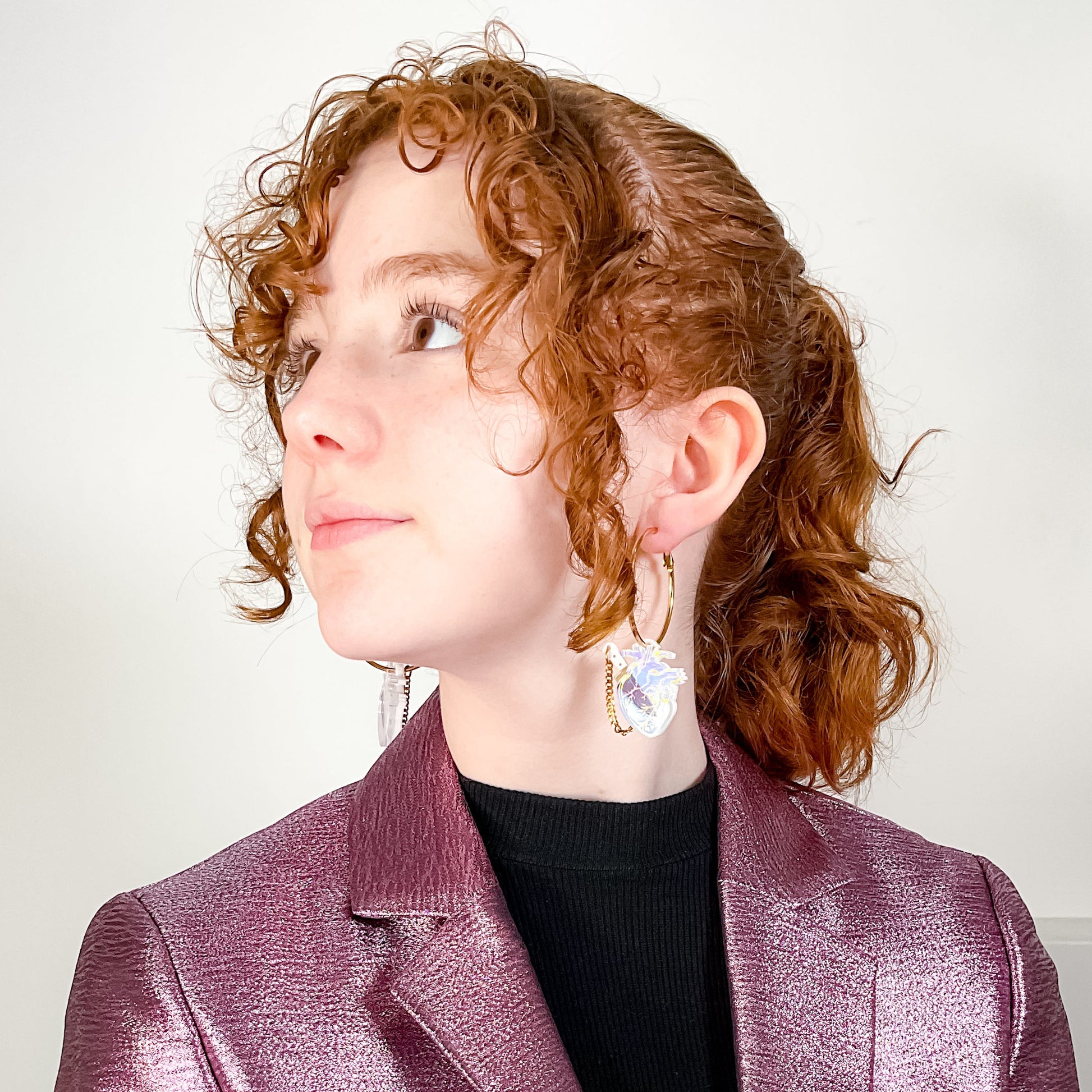 Talk about a conversation starter! If people aren't too scared of you, that is. Tell 'em to eat their hearts out....or you'll do it for them! These are in a dreamy iridescent with gold and white knives.