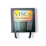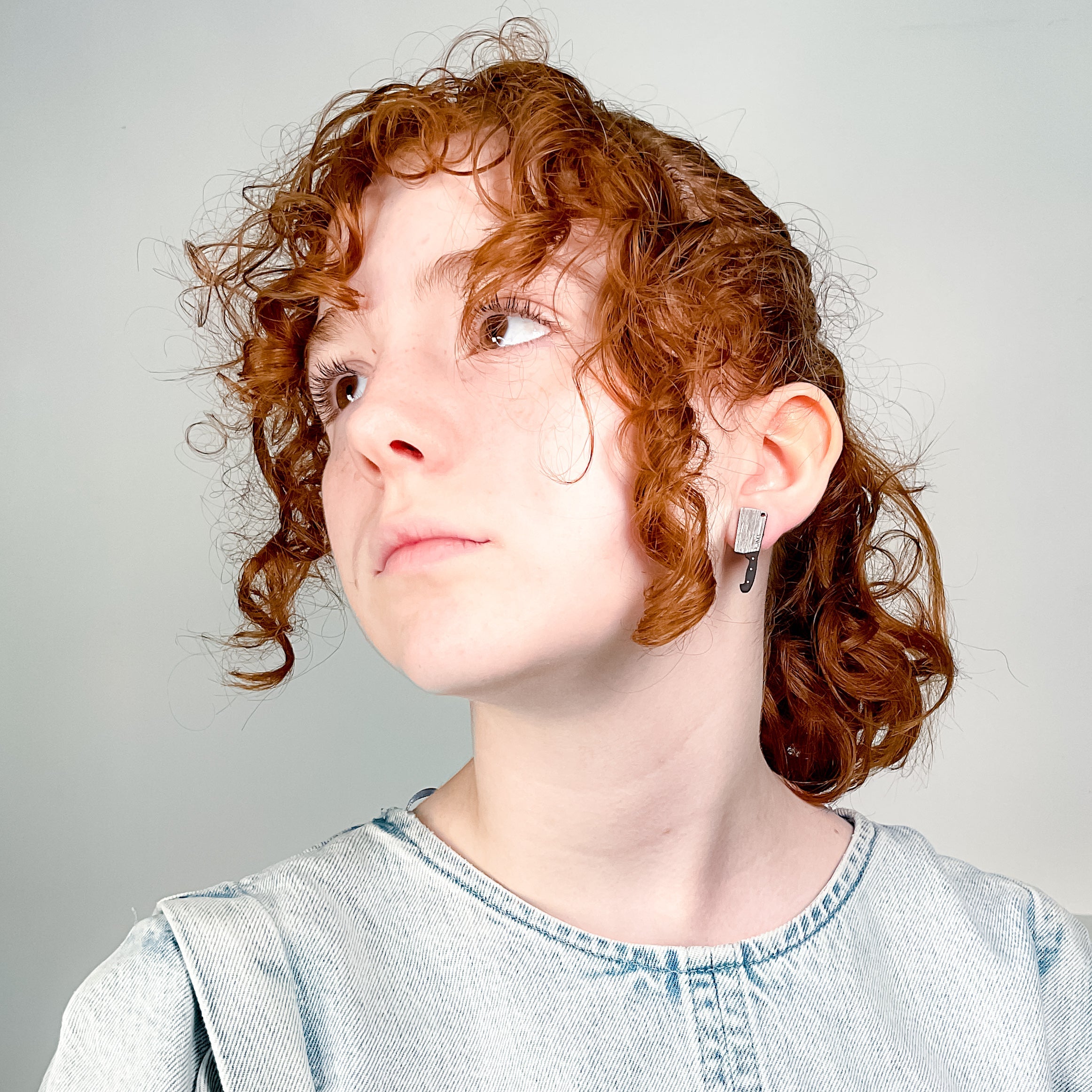 Our cleaver earrings are cut from two layer silver tone and matte black acrylic. Cleaver earrings are finished with a surgical steel post. Cleavers are approximately .6" x 1.7".