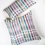 Ivory, grey and rainbow pillow, ethically handwoven by artisans in Totonicapan, Guatemala on traditional footlooms. Hand ikat (jaspé) dyed on natural white cotton.