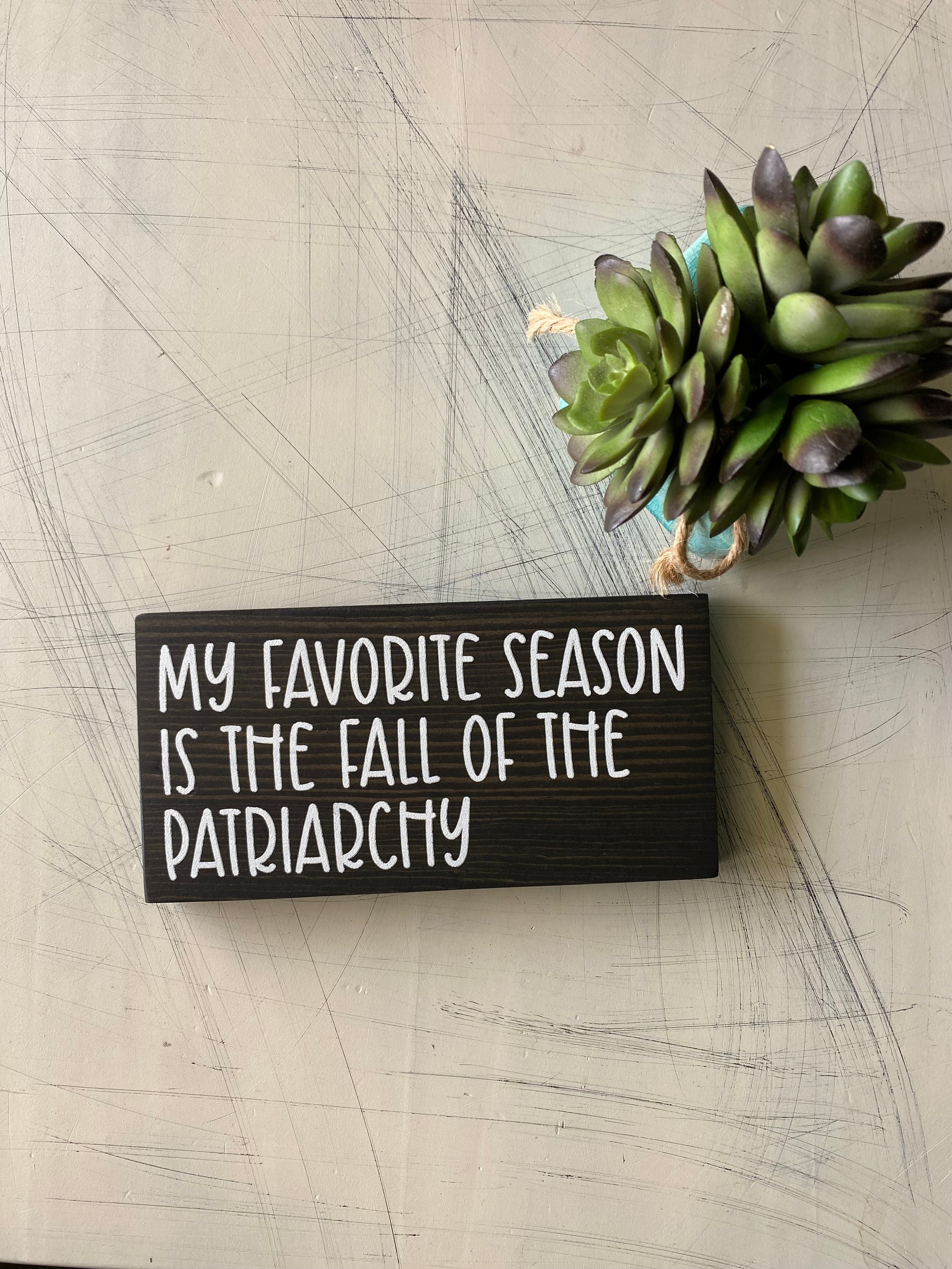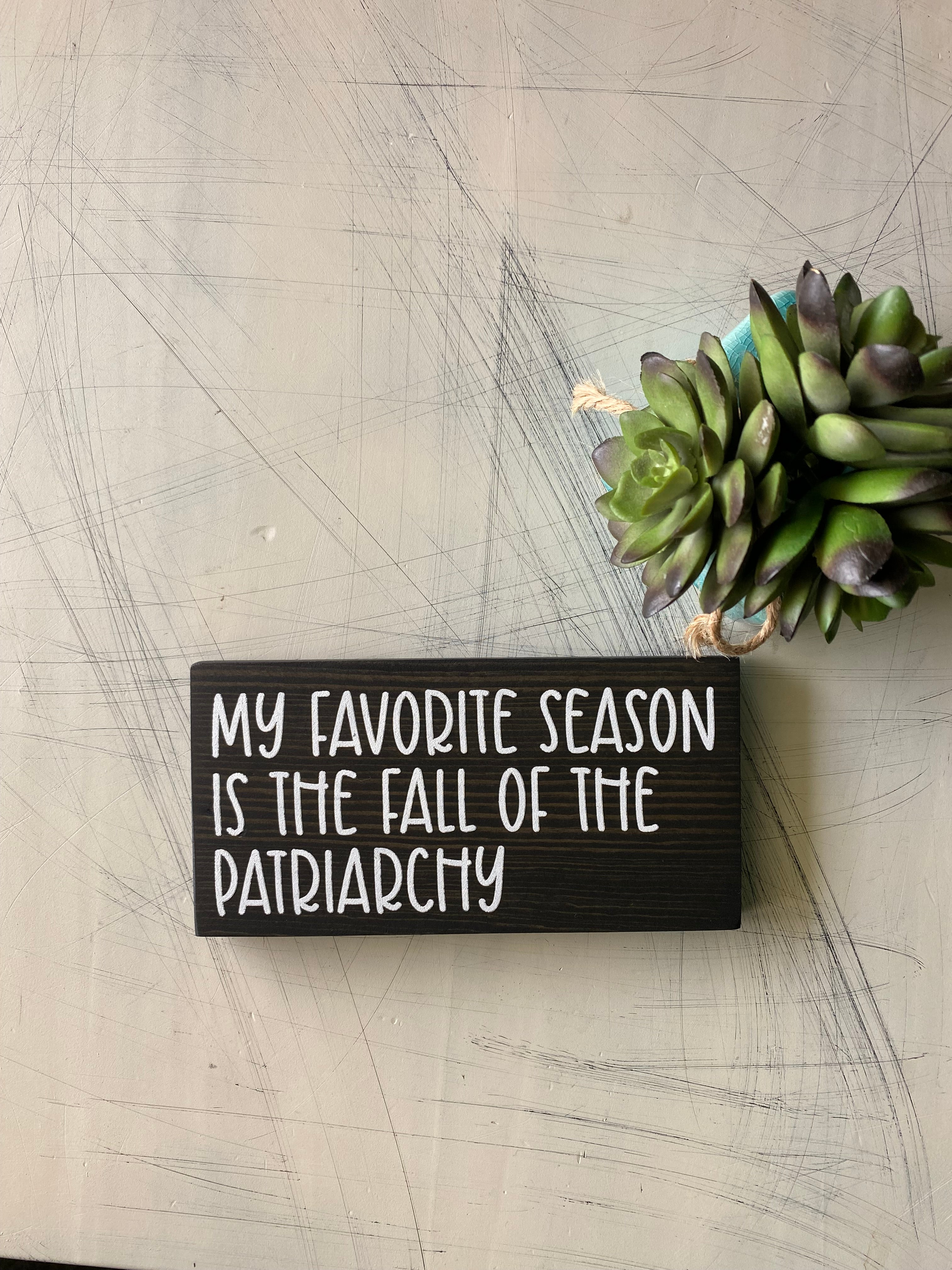 Feed your feminist spirit with this, "My Favorite Season Is The Fall Of The Patriarchy," handmade wood sign! It's the perfect decoration for any room, espousing an important message while being a stylish accent. Let folks know where you stand with this thought-provoking sign! 💪
