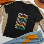 Indulge in ultimate comfort and make a statement with our reSisters V-neck t-shirt. This tri-blend shirt is perfect for a polished and relaxed everyday look, with its soft fabric and stylish V-neck.